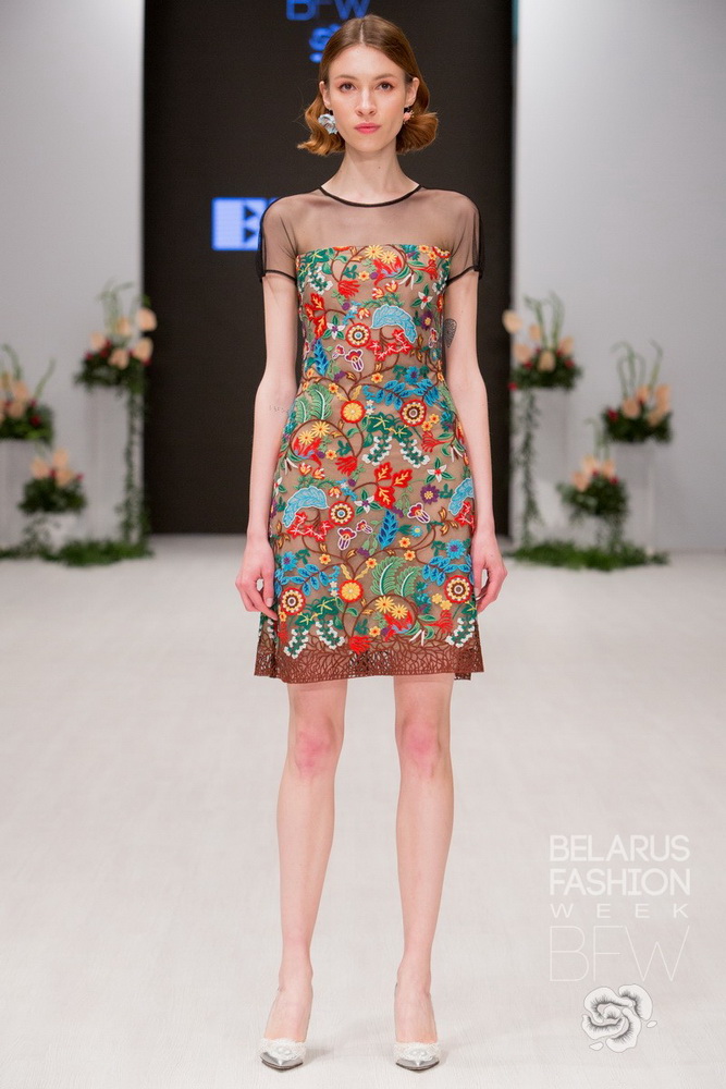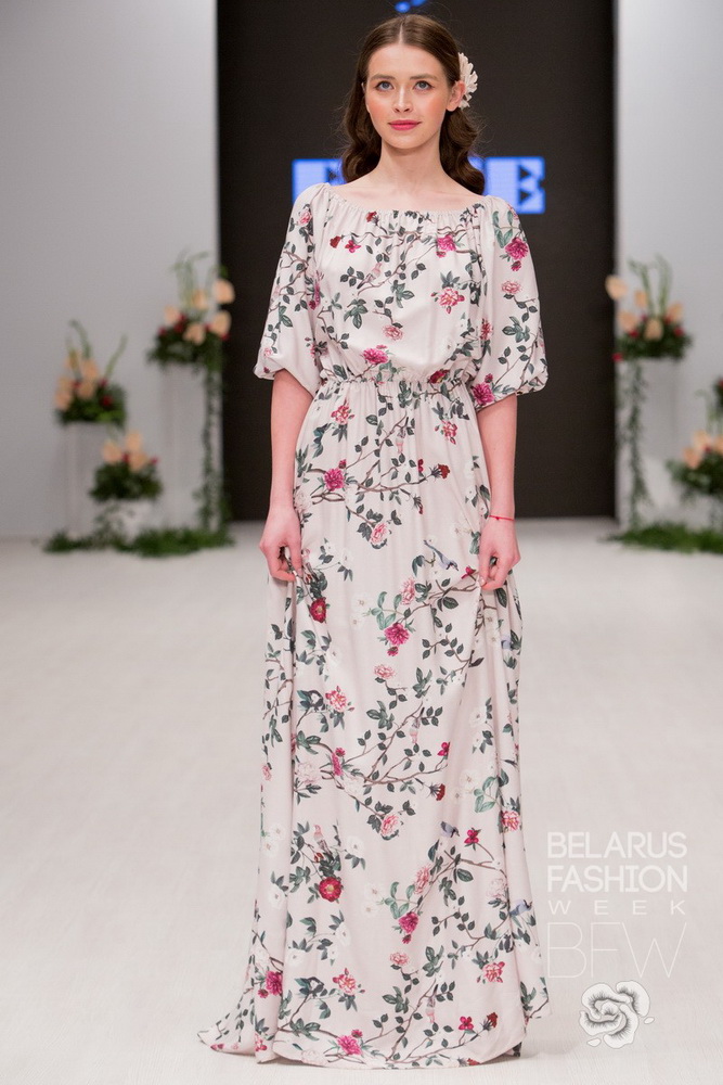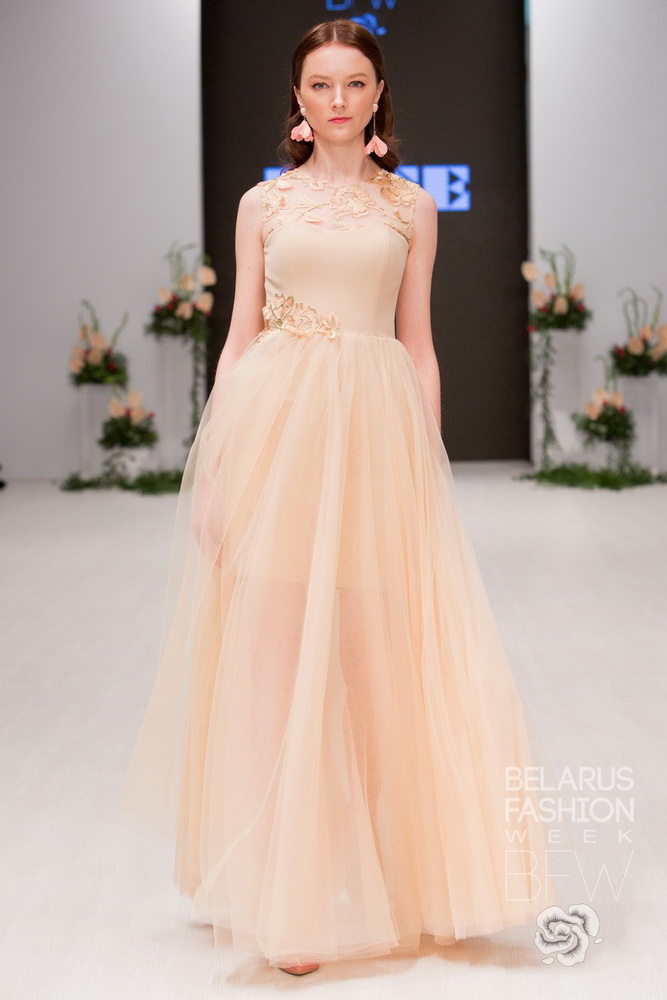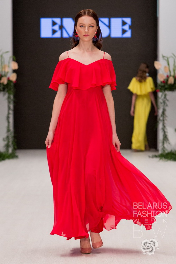 Semaine de la mode biélorusse automne-hiver 2025-2026, des robes en tissu fin avec une jupe volante sans cadre ont été présentées. Les couleurs sont vives, lilas intense, jaune brillant, rouge feu.
