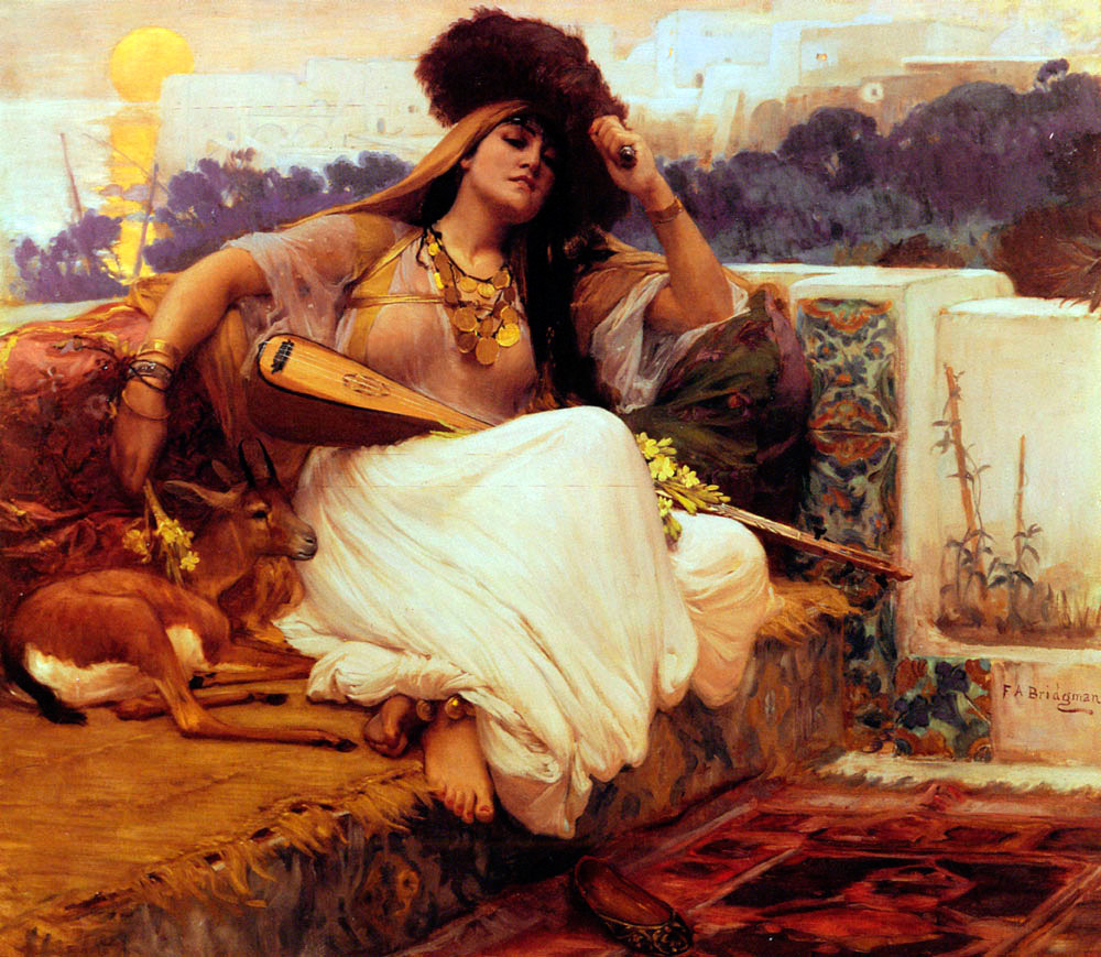 Frédéric Arthur Bridgeman (1847-1928)On ne sait presque rien du costume féminin de la Perse, car seules des images masculines ont survécu sur les anciens bas-reliefs persans qui ont survécu à ce jour - des images de chasseurs et de guerriers. Cependant, les Perses ont été peints par les anciens Grecs. Par exemple, sur leurs vases.Ainsi, on peut supposer qu'en Perse, les femmes portaient des vêtements faits de tissus coûteux, longs et larges, rappelant un peu le costume d'un homme. Mais en même temps, ils se distinguaient par la richesse du décor.