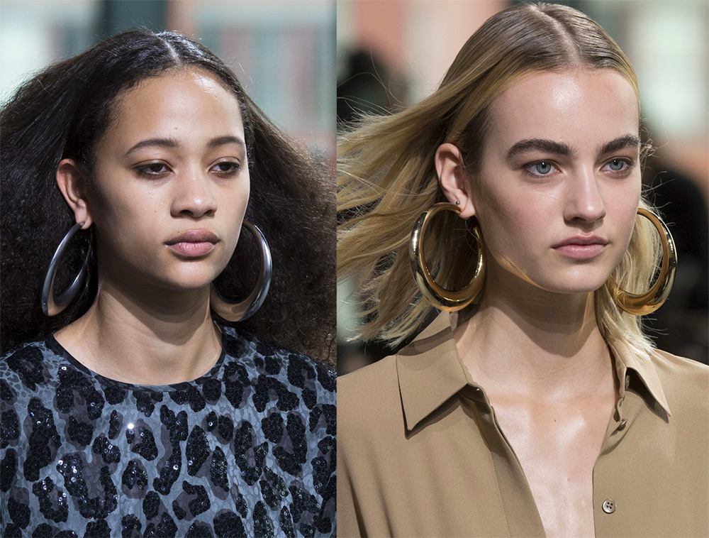 Pour les périodes plus fraîches, le meilleur choix serait des boucles d'oreilles avec un diamètre de cercle plus petit afin qu'elles ne s'accrochent pas à l'écharpe ou au chapeau. Les créoles en or sont particulièrement impressionnantes en automne, combinées au feu doré de la nature.