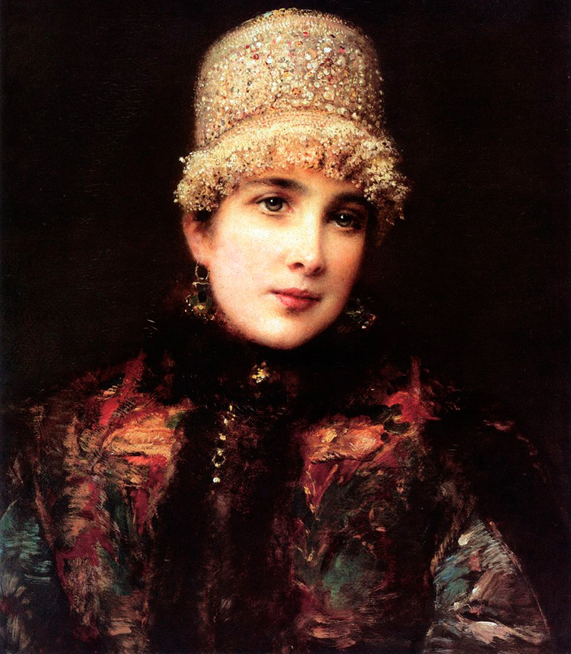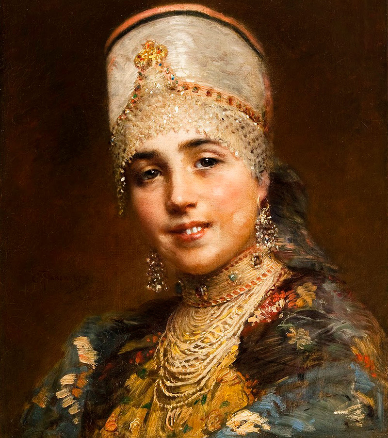 Sur les toiles de K.E. Makovsky dans des costumes luxueux et lumineux de sa propre collection a créé des images de belles femmes, contemporaines de l'artiste. Vous regardez la photo et vous avez l'impression que le motif ornemental russe brille, la robe d'été brodée de la beauté russe scintille de soie et d'argent. Et si vous faites attention, nous verrons que sur chaque image les filles d'aubépine ont des coiffes complètement différentes. En effet, la collection de kokochniks et de coiffes de l'artiste était l'acquisition la plus riche et la plus précieuse.
