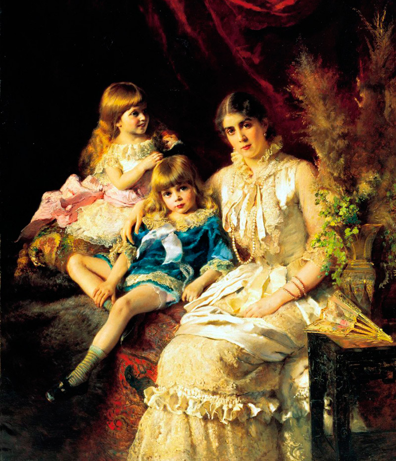 En 1889, Konstantin Makovsky se rend à l'Exposition universelle de Paris, où il expose plusieurs de ses peintures. Là, il s'intéresse à la jeune Maria Alekseevna Matavtina (1869-1919). En 1891, le fils illégitime Constantine est né. J'ai dû tout avouer à ma femme. Yulia Pavlovna n'a pas pardonné la trahison. Un divorce a été déposé quelques années plus tard. Et Konstantin Yegorovich a poursuivi une vie de famille heureuse avec sa troisième épouse, qu'il a également utilisée comme modèle. Il a également souvent représenté ses enfants de ses deuxième et troisième mariages dans ses toiles.