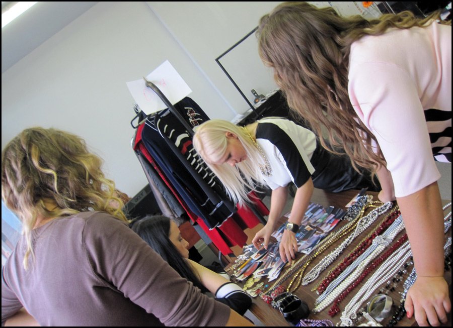 Le designer avec les modèles distribue la séquence des sorties, répartit les accessoires et les bijoux.