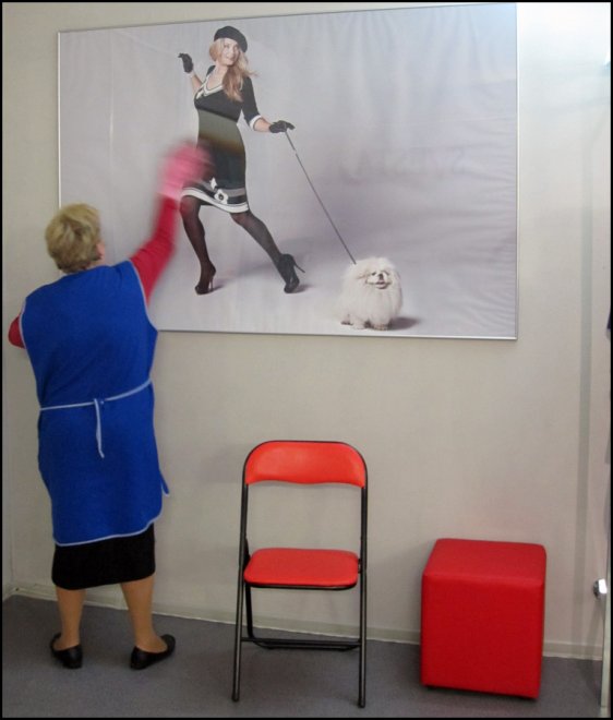 Une caméra installée dans le hall est connectée à l'ordinateur portable et grâce à cela, les modèles planifient leur sortie à l'avance.
