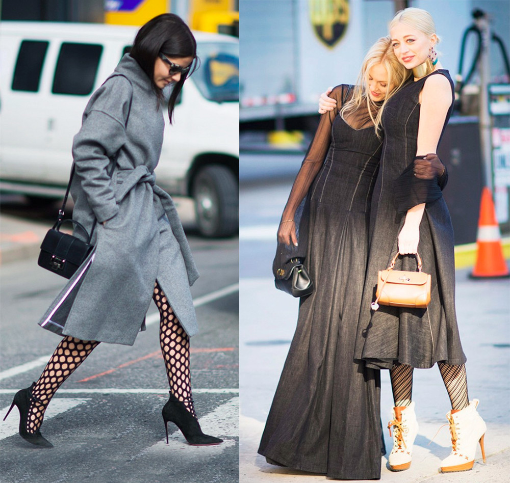 Maintenant que l'histoire scandaleuse des collants résille est restée dans un passé lointain, ils ne portent plus la connotation vulgaire qui était en eux avant. Aujourd'hui, une maille de différents types et tailles peut faire partie d'une robe et de tout autre article de garde-robe. Par conséquent, les collants en résille sont très pertinents, car tout le monde ne décide pas d'acheter immédiatement une robe en réseau, mais il est facile et simple d'expérimenter avec des collants.