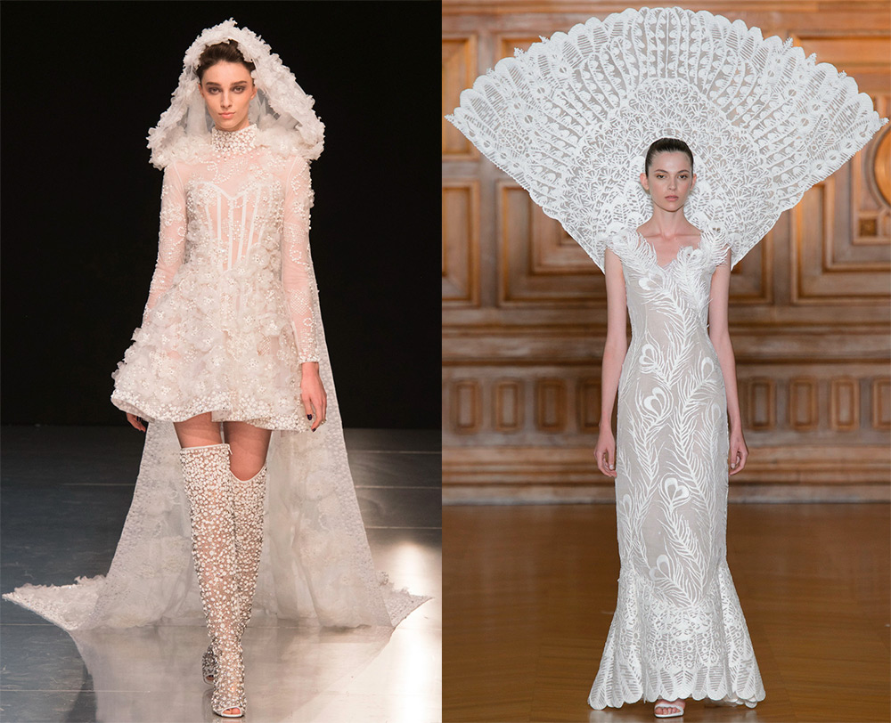 Iris Van HerpenLes connaisseurs des standards de beauté traditionnels trouveront de ravissantes robes dans les collections - Georges Hobeika, Zuhair Murad, Ziad Nakad, Ralph & Russo et Giambattista Valli. Ces robes sont exclusivement de mariage et luxueuses, dignes d'une vraie princesse.