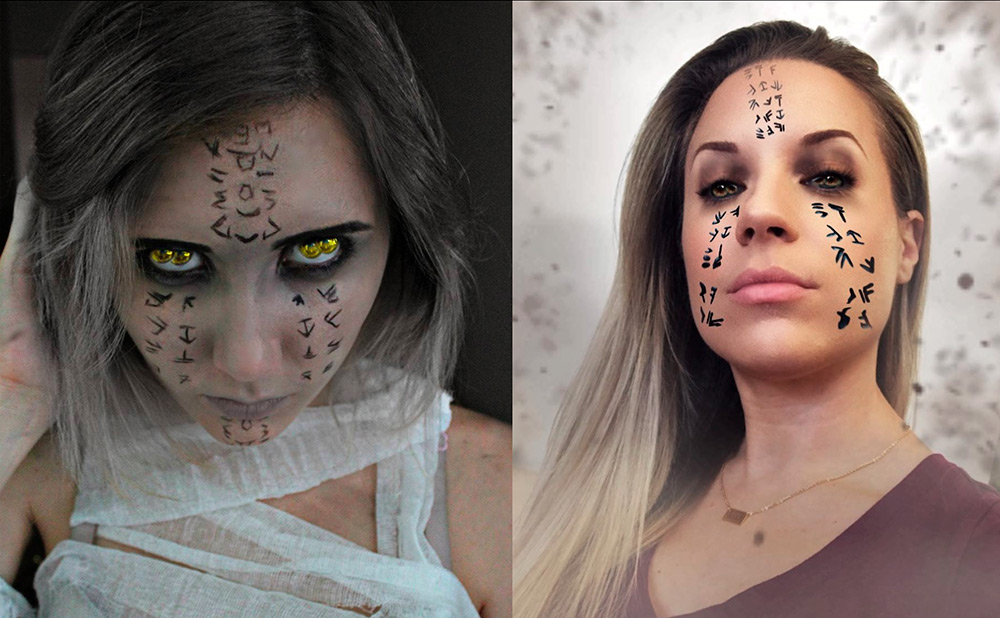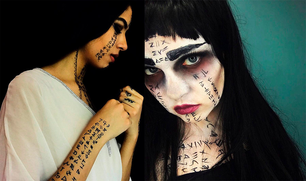 Le maquillage de style égyptien sera un bon ajout à l'image pour toute célébration, et si vous voulez répéter la princesse Amanet en entier, enveloppez-vous dans des bandages et appliquez des hiéroglyphes sur votre visage, vous devrez attendre Halloween ou simplement organiser une photo séance dans un vieux manoir abandonné ou d'autres ruines.