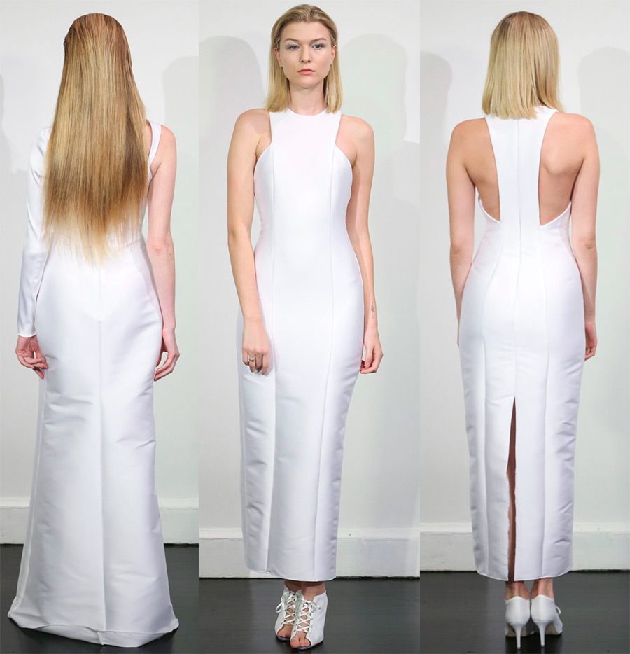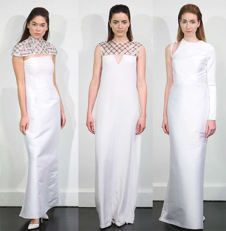 Victor et RolfLa meilleure option pour une robe de mariée dans un style strict est une simple robe blanche à coupe droite, en tissu naturel coûteux. L'ajout sera des bijoux et des accessoires qui n'attireront pas toute l'attention sur eux et souligneront la sévérité et la clarté des lignes. Cette combinaison aidera à créer l'image d'une mariée d'origine aristocratique, fatiguée du luxe excessif et appréciant la simplicité et le minimalisme.