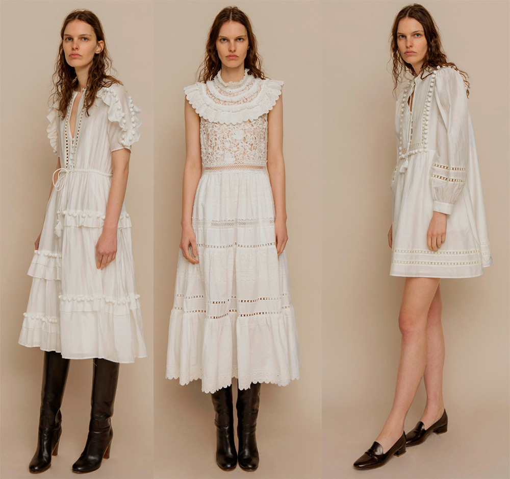 De tels modèles se retrouvent dans les collections d'Alexander McQueen, Alessandra Rich, Jonathan Simkhai, Valentino et de nombreuses autres marques, y compris les plus démocratiques.