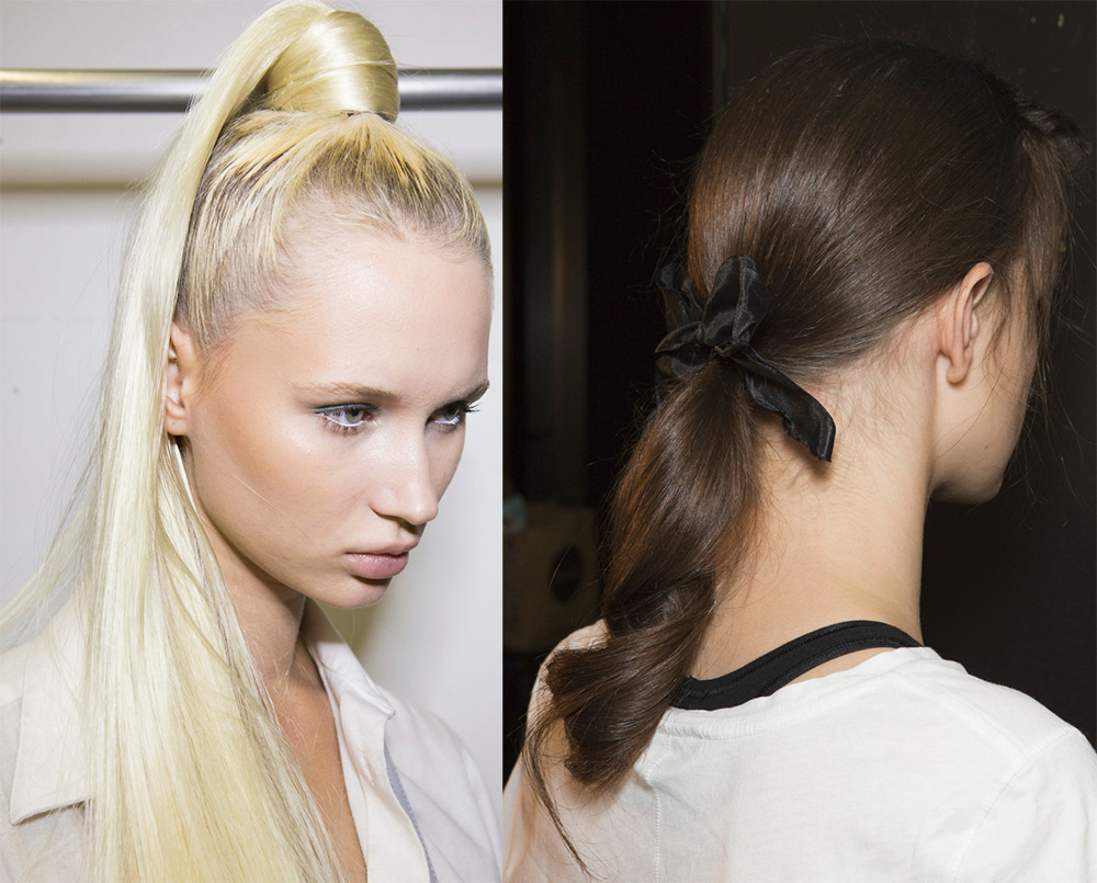 • coiffure avec queue de cheval basse pour cheveux raides