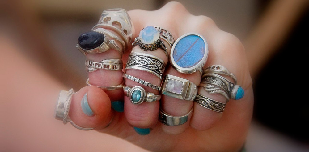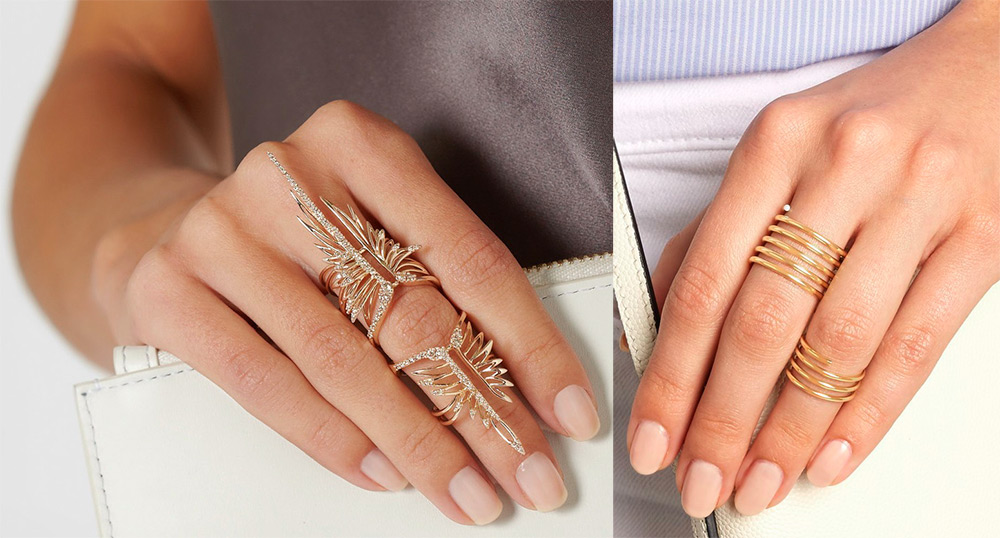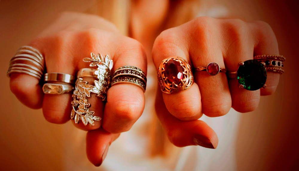 Si vous le souhaitez, vous pouvez décorer tous les doigts avec des bagues et mettre deux bagues plus petites sur deux doigts. Cela conviendra aux filles créatives et aux fashionistas les plus brillantes qui aiment attirer l'attention.