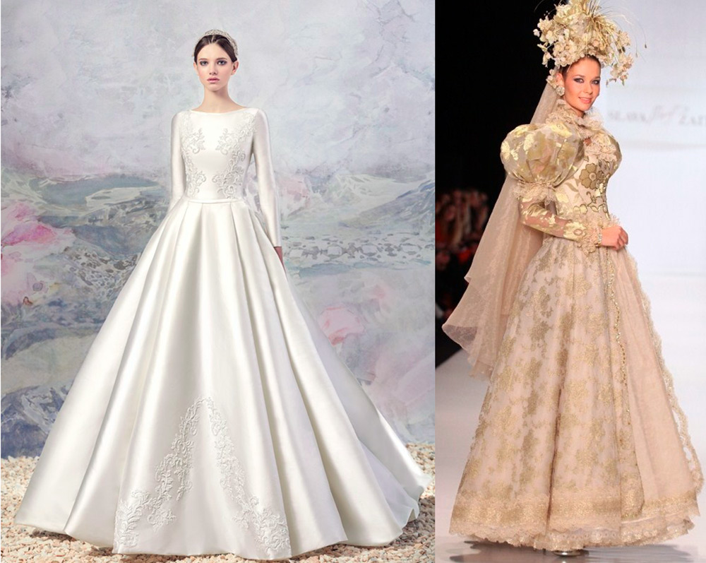 Dans les salons, il y a beaucoup de tenues blanches uniformes qui copient les robes de créateurs célèbres comme Elie Saab. C'est arrivé par la force de l'habitude, une mariée rare est capable d'expériences sérieuses. Seules les célébrités, les adeptes de la sous-culture et les filles créatives peuvent se permettre des choix extraordinaires. La plupart d'entre elles achètent une robe standard, les salons sont donc guidés par les envies des mariées.