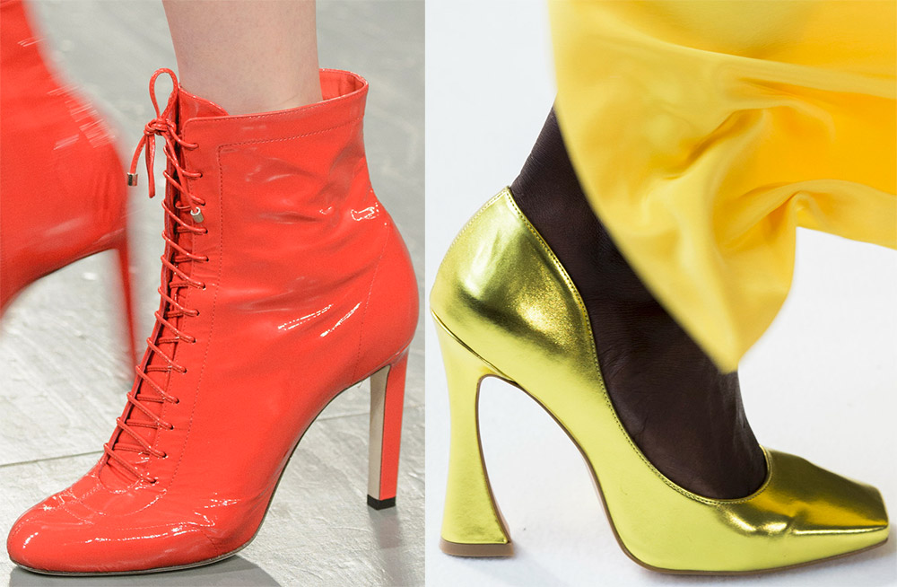 La forme des talons est également illimitée, mais dans les chaussures habillées pour les occasions spéciales, les concepteurs ont préféré un bout pointu. L'idée principale de la mode moderne est la liberté totale, clairement démontrée dans les nouvelles collections.