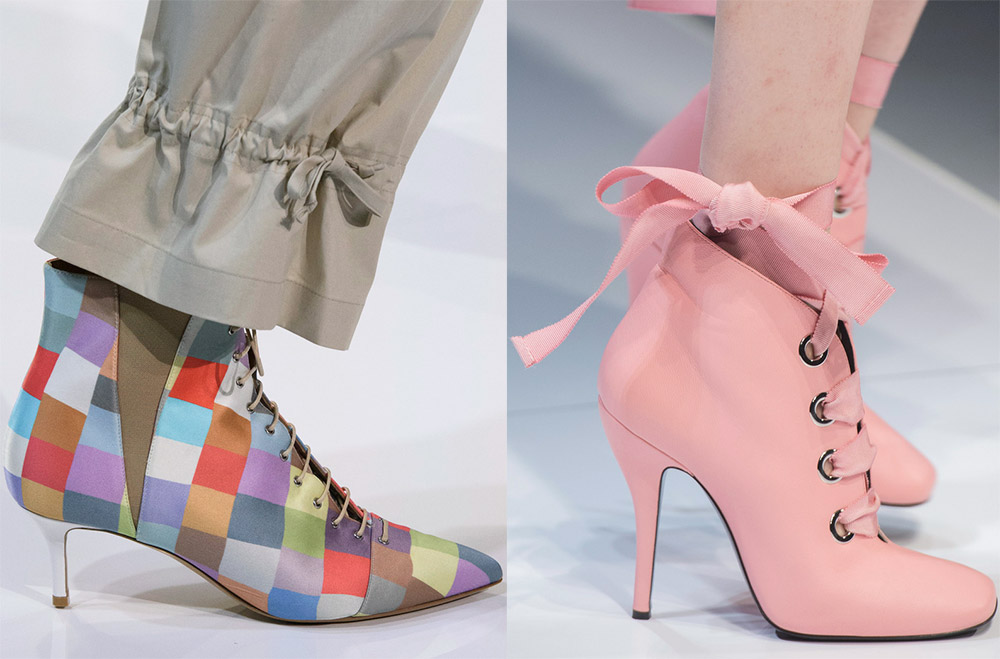 Ce sont, tout d'abord, des bottes, des bottines et des bottes - tant de gens penseront. Oui c'est le cas. Pourtant, Stella Jean, Aigner, David Koma, Emporio Armani... proposent aussi bien des sandales que des sandales dans leurs collections, où le laçage devient même pratique.