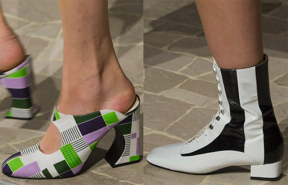 Parmi ces modèles, il y a ceux dans lesquels vous pouvez aller au bureau et à une fête. Faites attention aux modèles de la collection d'Antonio Marras, Annakiki, Aquilano Rimondi, Ashley Williams, Bottega Veneta, Christopher Kane, Cividini, où il y a des modèles avec un talon en verre, qui est assez bas. Ces chaussures sont également confortables pour un usage quotidien.