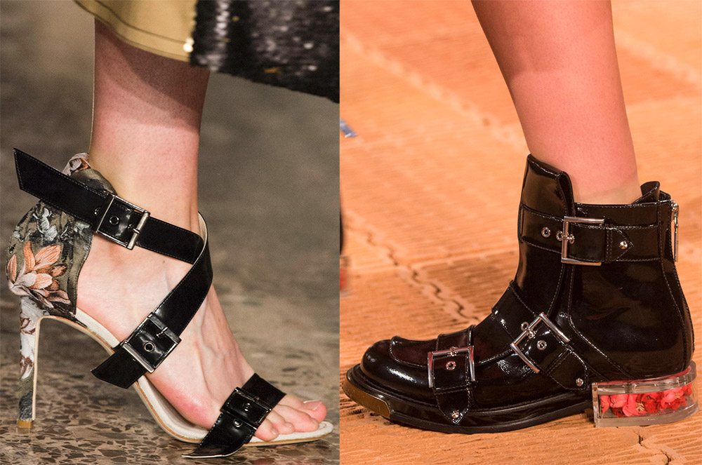 Les boucles sont principalement nécessaires pour sécuriser les chaussures. Mais tout n'est pas si simple. Dans la nouvelle saison, ils ont également une fonction supplémentaire - comme décoration.Cela s'est produit non seulement dans les bottes, clairement destinées aux boucles, mais même dans les sandales, et en grand nombre.