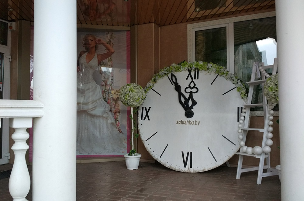Ce salon de mariage s'appelle Cendrillon. Et c'est le premier salon de mariage non seulement à Baranovichi, mais en général en Biélorussie. Le salon est apparu à la fin des années 1980. Il a plus de 25 ans. La fondatrice du premier salon de mariage en Biélorussie était Tamara Angurets, une designer autodidacte, historienne de formation. Aujourd'hui, elle est propriétaire de tout un réseau de salons de mariage à Baranovichi et à Minsk.