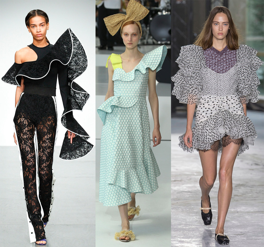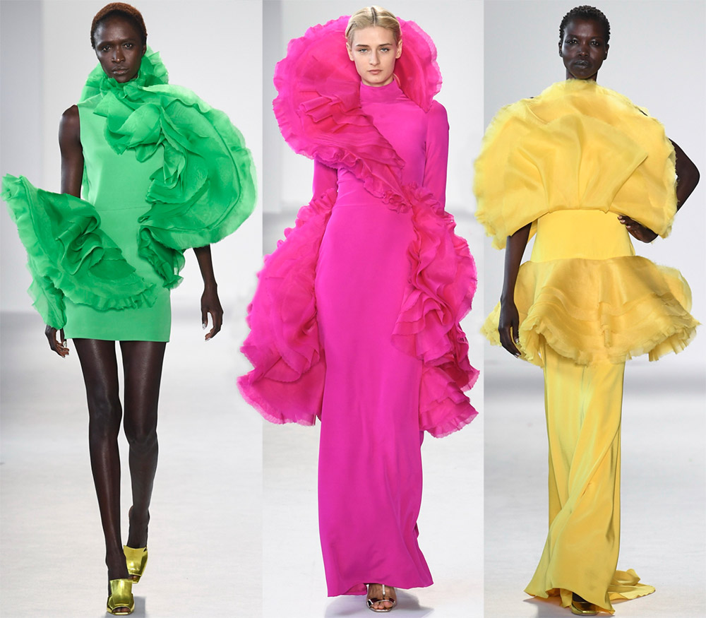 collection 2026 les designers Christian Siriano, David Koma, Emilio de la Morena et d'autres nous ont montré que les volants et les volants peuvent être dans une grande variété d'endroits et les tailles les plus immenses.