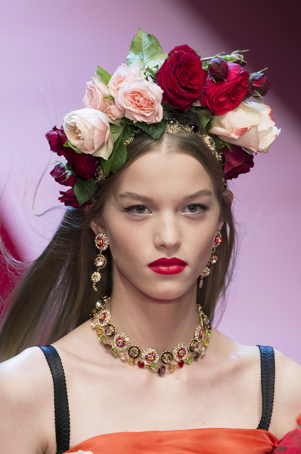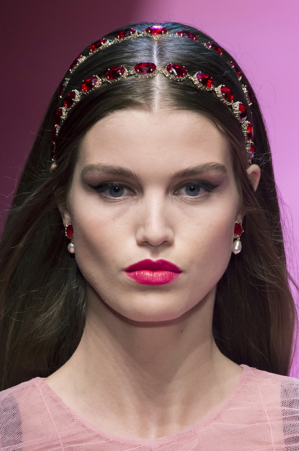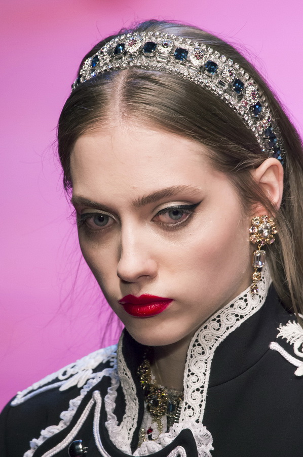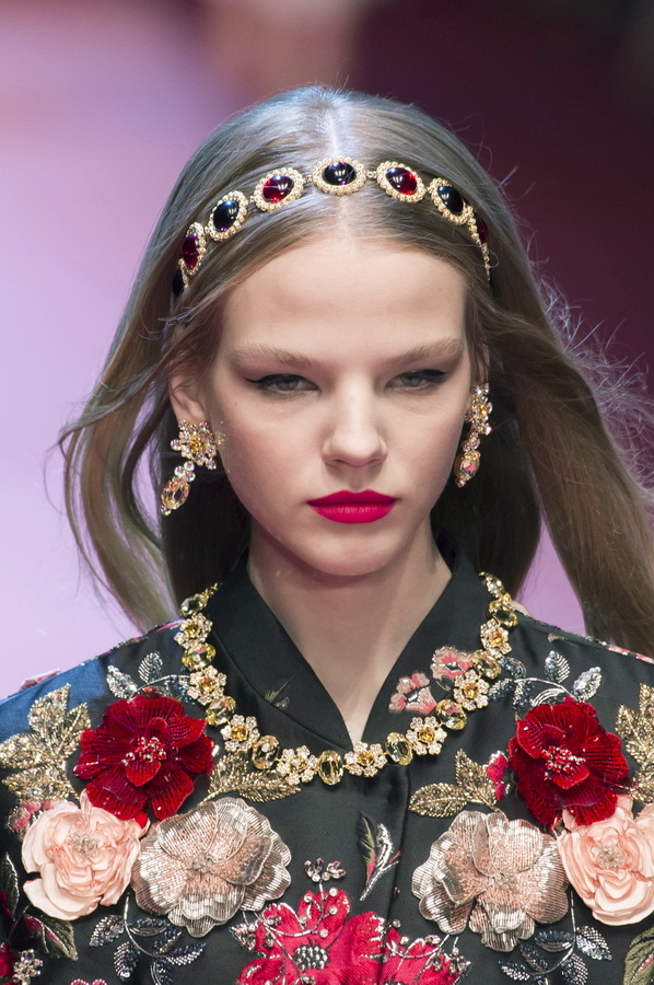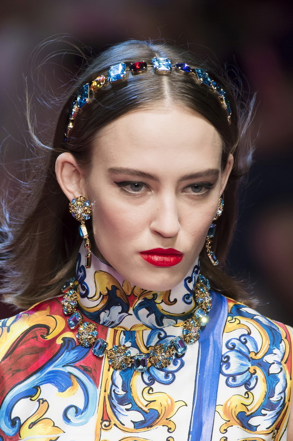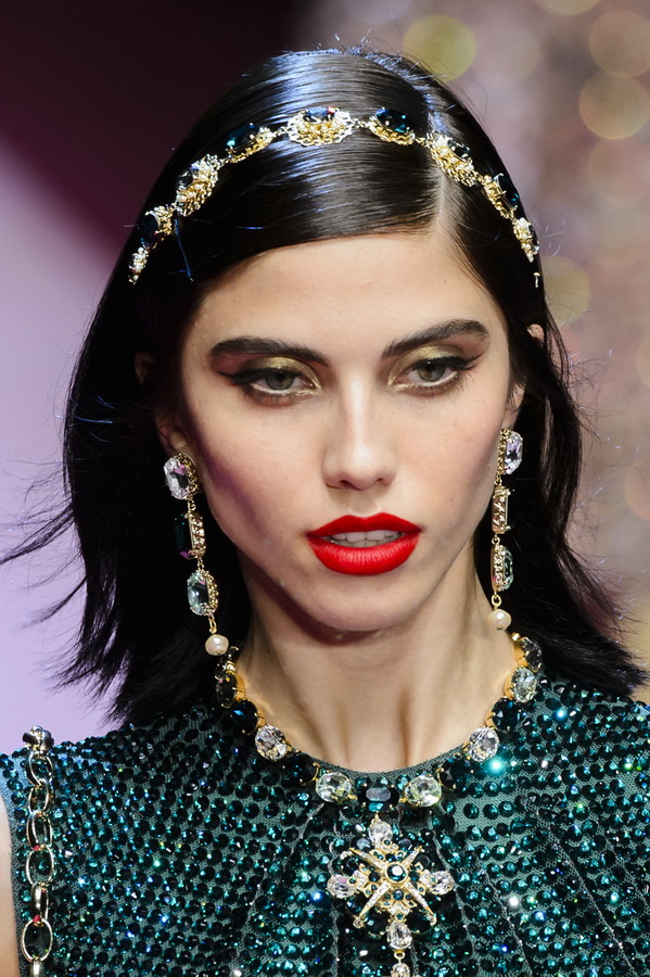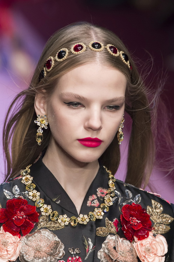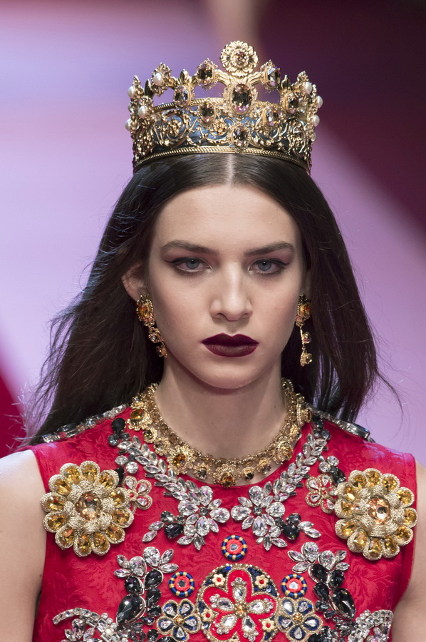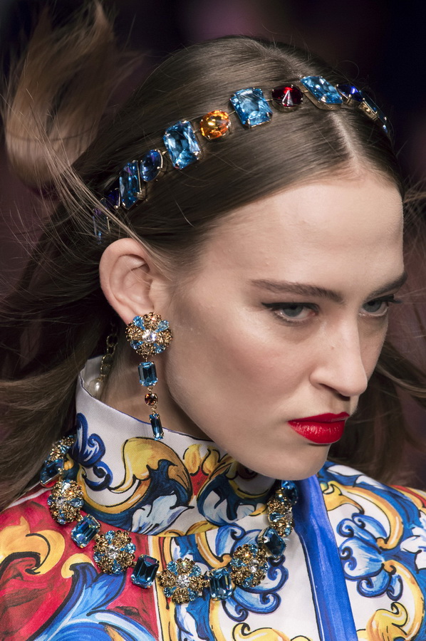 Dolce & Gabbana propose toujours des bijoux de luxe - colliers, colliers, boucles d'oreilles, bandeaux et diadèmes qui répondent aux normes de beauté traditionnelles et sont compris de tous. L'essentiel est de choisir des bijoux qui correspondent à la robe, ou vice versa.