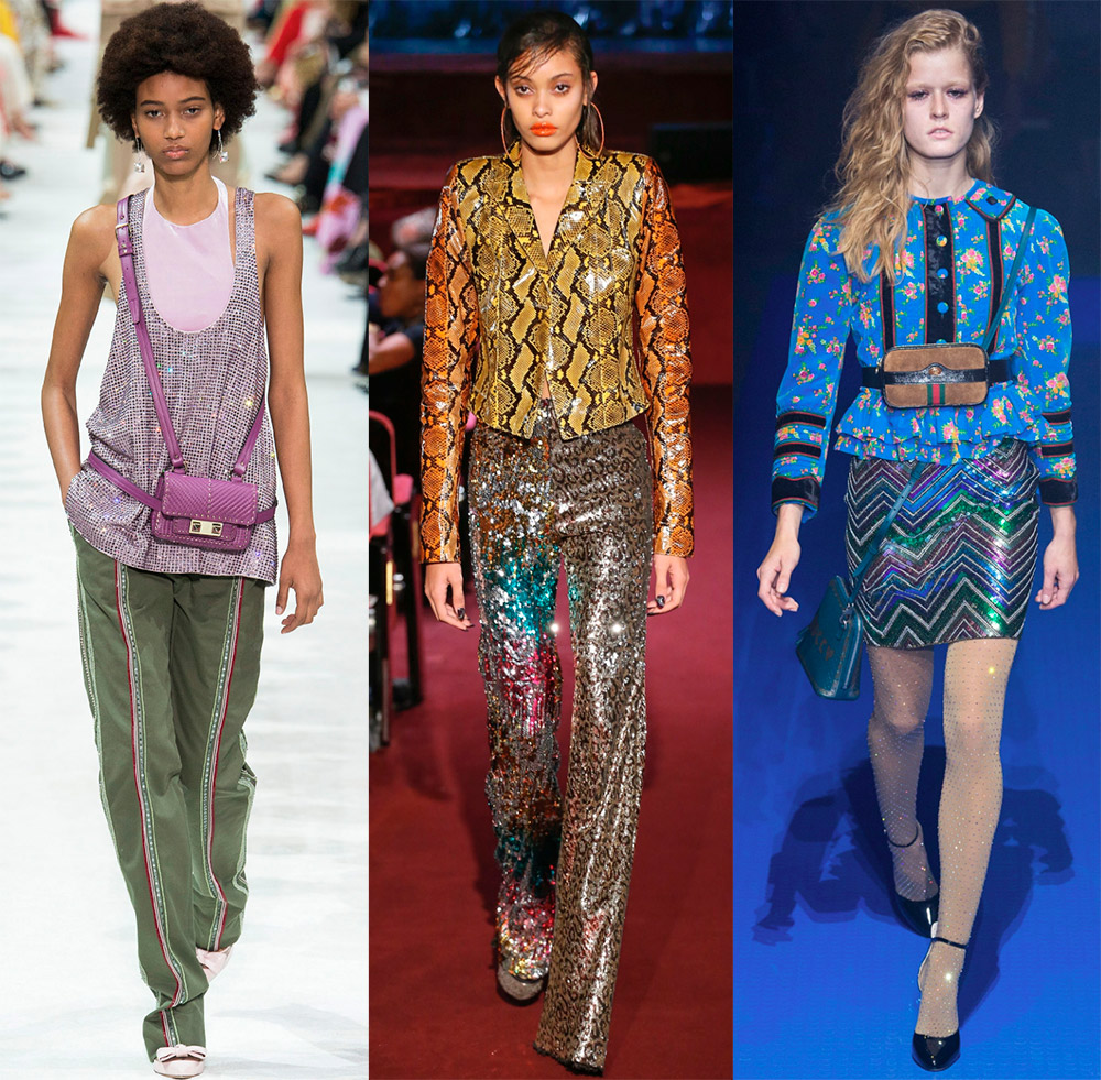 Delpozo, Erdem, Oscar de la RentaPendant une longue histoire, les paillettes et les strass ont été un attribut indispensable des robes de soirée et des costumes de scène. Dans la mode moderne, les créateurs aiment combiner l'incongru. Ils ont donc décidé de combiner le décor étincelant dans un ensemble avec des pantalons de survêtement, des vestes, des jupes et d'autres articles.