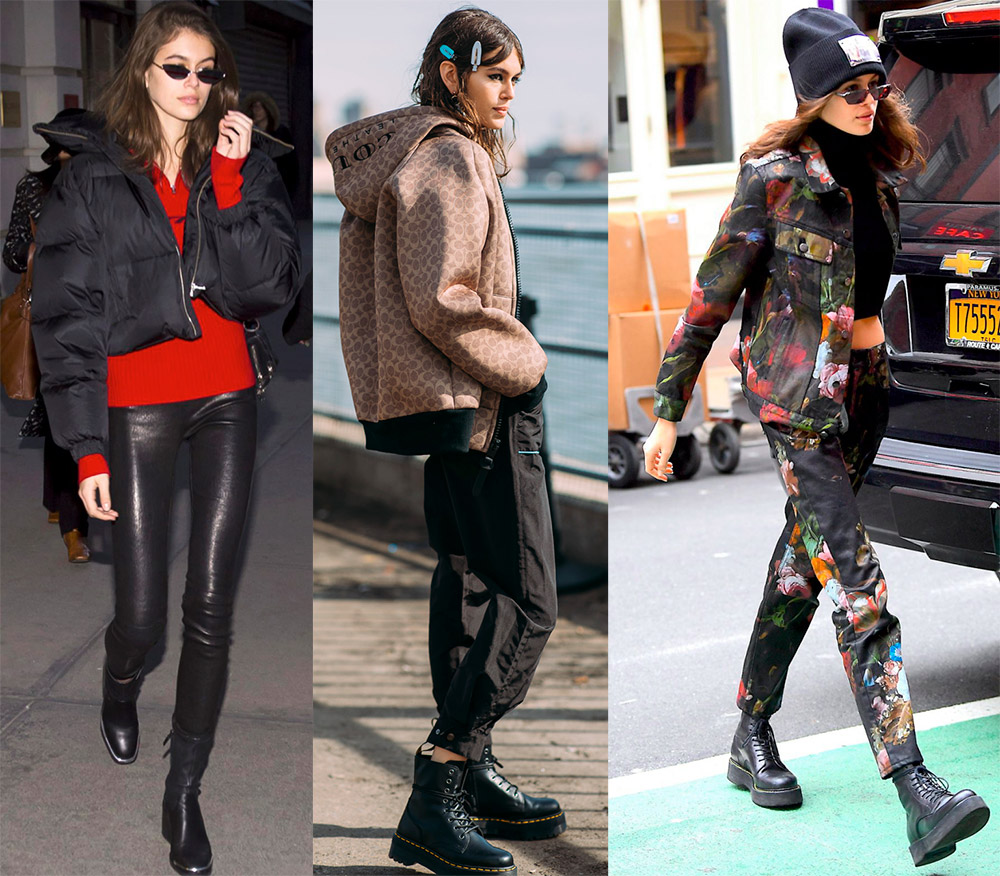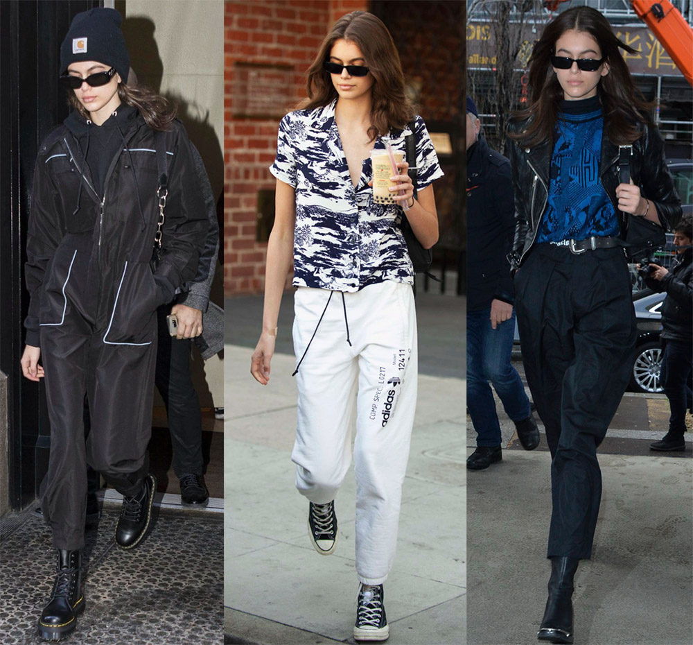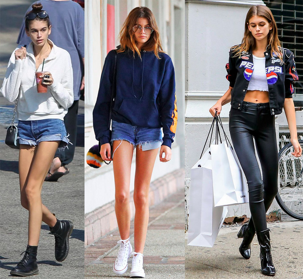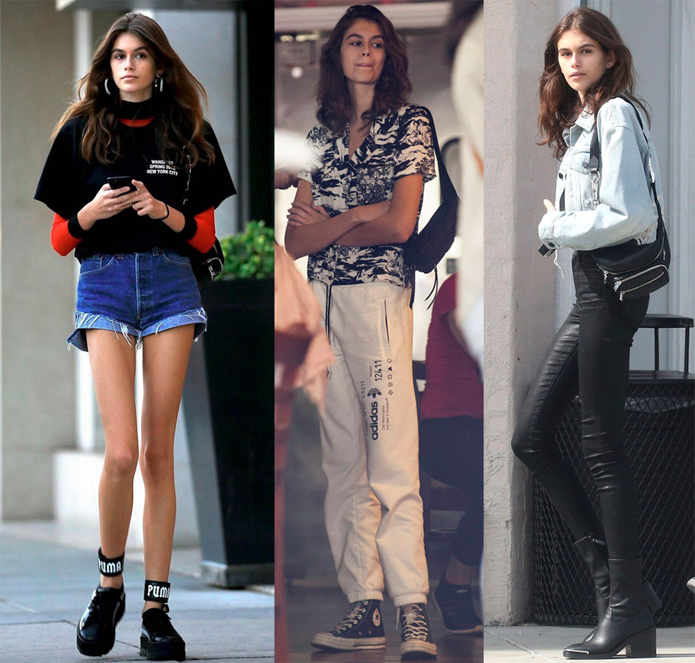 Kaia Gerber est une toute jeune mannequin, en septembre elle n'aura que 17 ans, elle est maintenant en âge scolaire, mais sur le podium elle doit essayer des images très adultes. Les vêtements des collections de mode et le maquillage donnent l'impression que le modèle vieillit, de sorte que de nombreuses écolières sont très intéressées par l'apparence de Kaya dans la vie de tous les jours et par son style vestimentaire dans la rue.