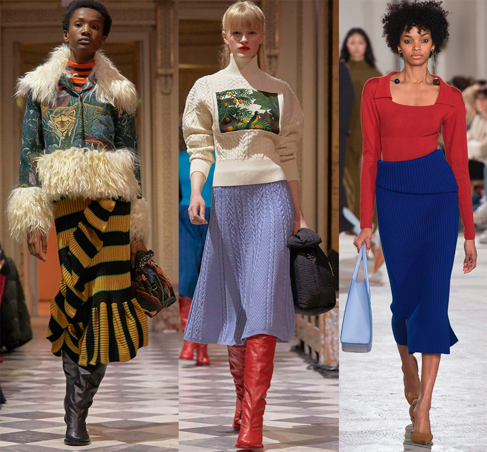 toujours à la mode des jupes aux tons sobres et sourds subsistent. Ils se sentent chauds et confortables. Les jupes chaudes pour la nouvelle saison sont polyvalentes car elles peuvent être utilisées pour créer des looks classiques, professionnels et décontractés. Le même modèle peut être associé à une variété de hauts pour des styles intéressants.