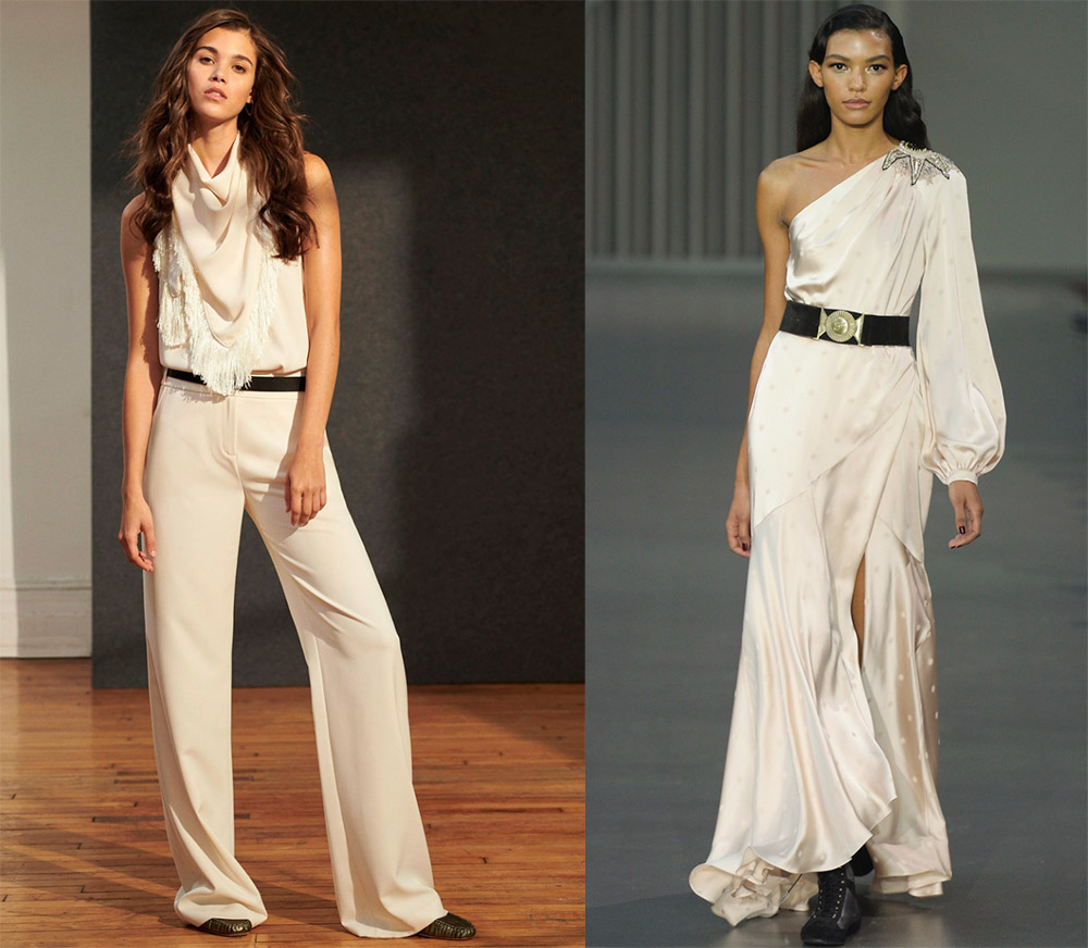 Milly, Alexis Mabille Tofu. La base blanc crème est blanche avec une touche de beige. Cela crée une atmosphère de tendresse et de chaleur, ainsi que le sentiment qu'un grand gâteau à la crème avec des pétales de rose enroulés nous attend. Cette couleur aura fière allure dans un style campagnard, safari, ainsi que des looks bohèmes et des chemisiers luxueux dans un style romantique.