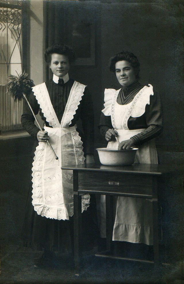 La bonne faisait beaucoup de travaux ménagers. Elle devait être discrète et en même temps avoir l'air décente, peut-être même belle, pour ne pas gâcher l'intérieur de la maison. L'image d'une femme de chambre n'était pas censée contenir un soupçon de sexualité, mais faire preuve d'obéissance, de discipline, de propreté et de convivialité. Ce sont les associations qui devraient surgir à la vue d'une femme de chambre au 19e et au début du 20e siècle.