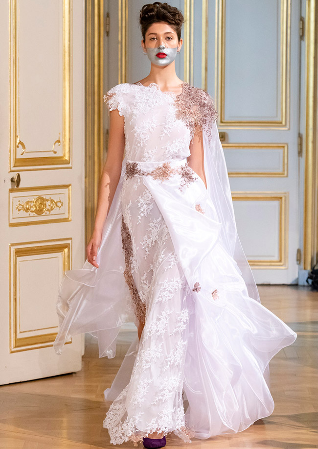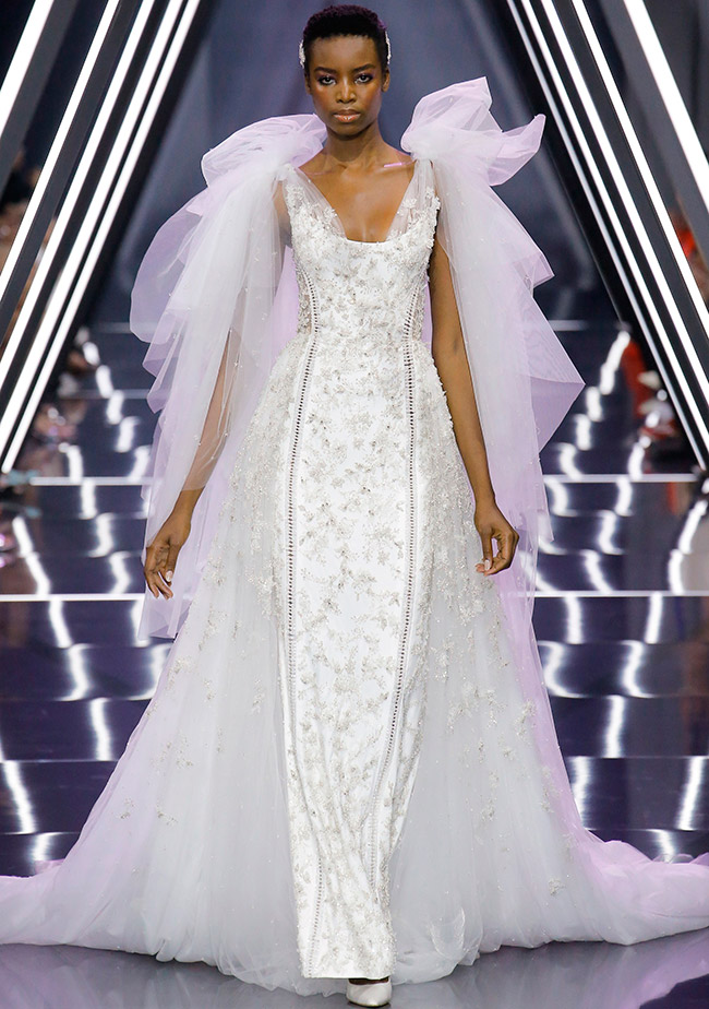 De nombreuses collections de haute couture sont complétées par un mannequin vêtu d'une luxueuse robe de mariée. Habituellement, les robes de mariée couture sont très riches et luxuriantes, en particulier de marques comme Elie Saab. Mais aujourd'hui, nous ne limiterons pas le choix. Dans les collections couture, on trouve beaucoup de robes qui ne se positionnent pas comme des robes de mariée, alors qu'elles surpassent la plupart des robes des salons de mariage, car c'est de la haute couture.