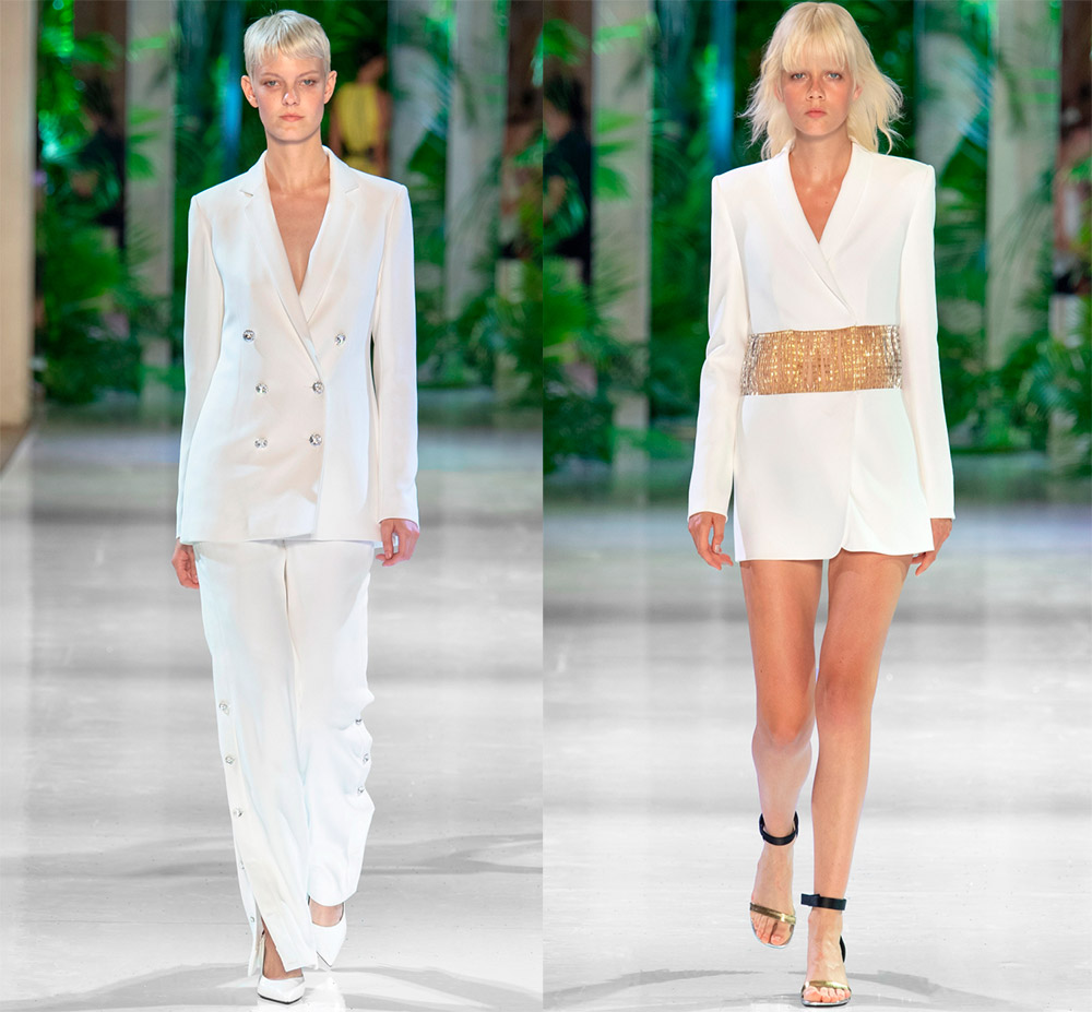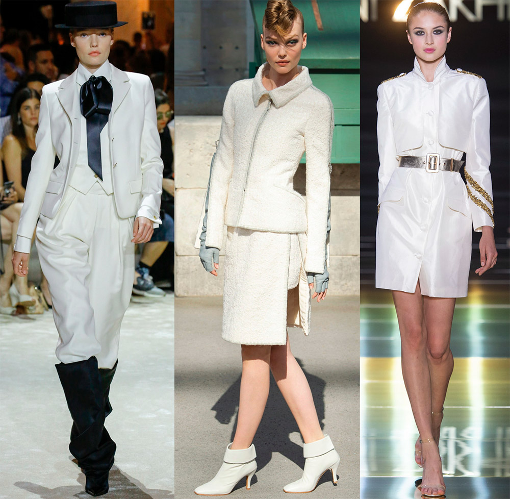 En fait, il n'y a rien à craindre, si vous choisissez un beau costume blanc ou une combinaison élégante avec de la dentelle, l'image ne sera pas moins solennelle et belle que dans une robe. La meilleure sélection se trouve dans les collections Haute Couture.