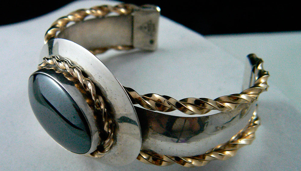Les bagues et les bracelets sont particulièrement utilisés depuis longtemps. Les chevalières et les pierres précieuses (miniatures sculptées) sont incroyablement belles. Ils attirent littéralement l'œil avec leur mystérieux éclat métallique et leur couleur noire saturée profonde avec une teinte rougeâtre.