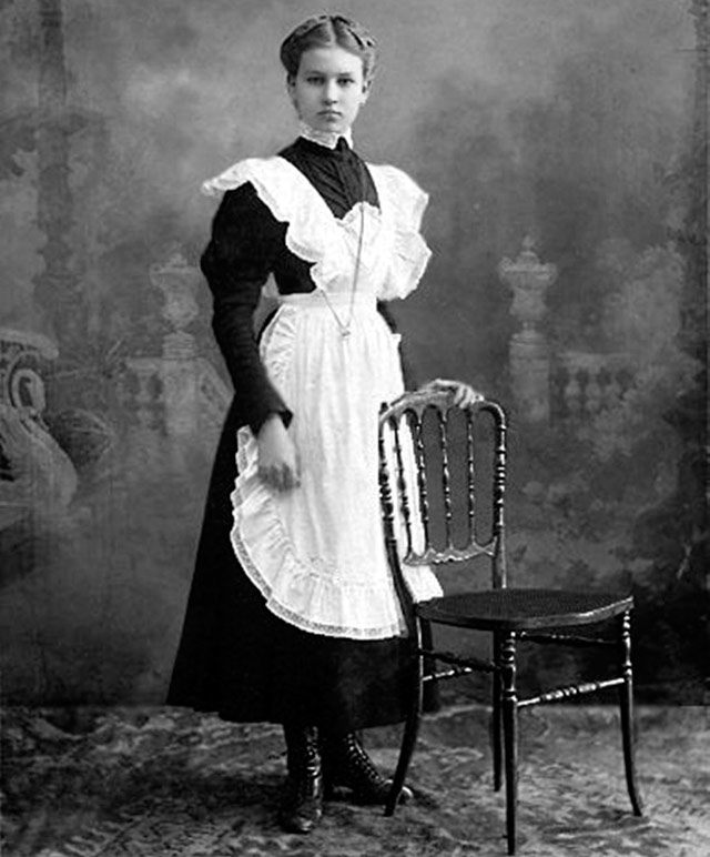uniforme scolaire et tenue de femme de chambre... La principale raison de la similitude est que la forme doit être soignée, disposée à l'obéissance, à la discipline et au travail. De plus, une femme de chambre et une écolière ne devraient pas avoir l'air séduisantes.