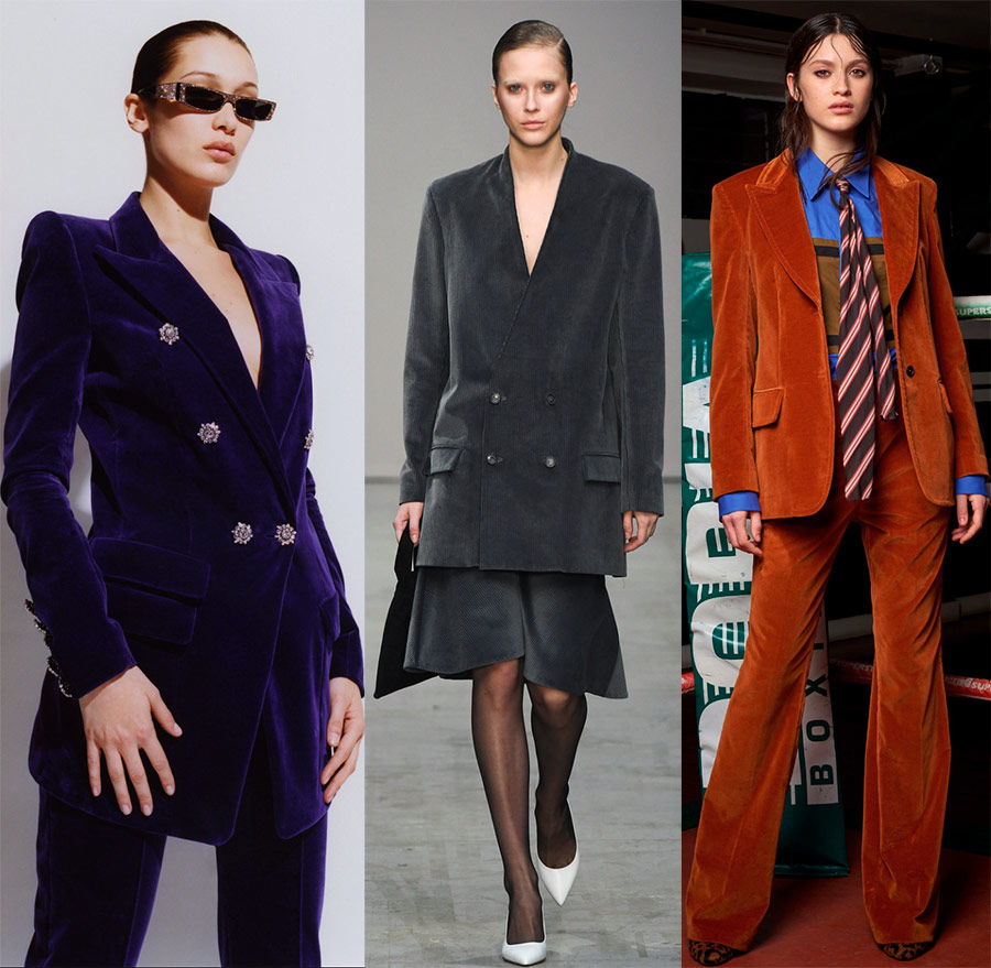 velours et la tapisserie sont très pertinentes dans la nouvelle saison. Les vestes ou même les costumes faits de ces tissus auront fière allure non seulement dans la version de bureau, mais aussi dans un environnement moins stressant, lorsque vous pourrez vous asseoir en toute sécurité avec des amis autour d'une tasse de café.