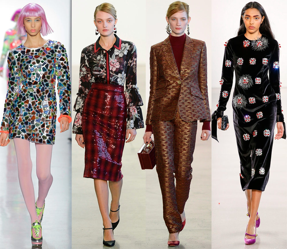 Les strass et les paillettes de différentes tailles sont populaires dans la nouvelle saison. Il existe des tissus dans lesquels vous vous sentirez comme un sapin de Noël. La brillance et le miroitement ne sont pas seulement créés par des paillettes ou des strass, il existe des tissus métallisés, avec une pulvérisation ou un tissage spécial de fils.