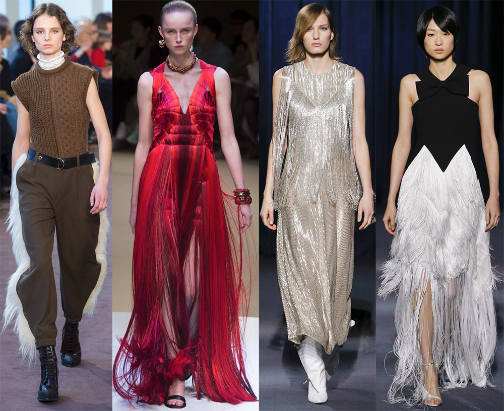 La frange ne quitte pas les défilés de mode. A chaque Fashion Week, cet élément de décoration se rappelle. Il reste sur les ourlets des robes, des manches, des poches, des pantalons, des vestes, etc. Il ne reste plus qu'à être surpris de la façon dont les concepteurs parviennent à l'interpréter de telle manière qu'à chaque nouvelle saison, nous le rencontrons contrairement aux versions précédentes.