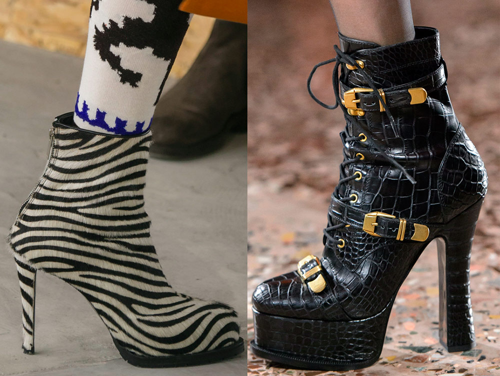 peut ressembler à la fois à des sandales et à des bottines. Dans de nombreuses collections, vous pouvez trouver des bottines élégantes et luxueuses pour un automne au chaud.