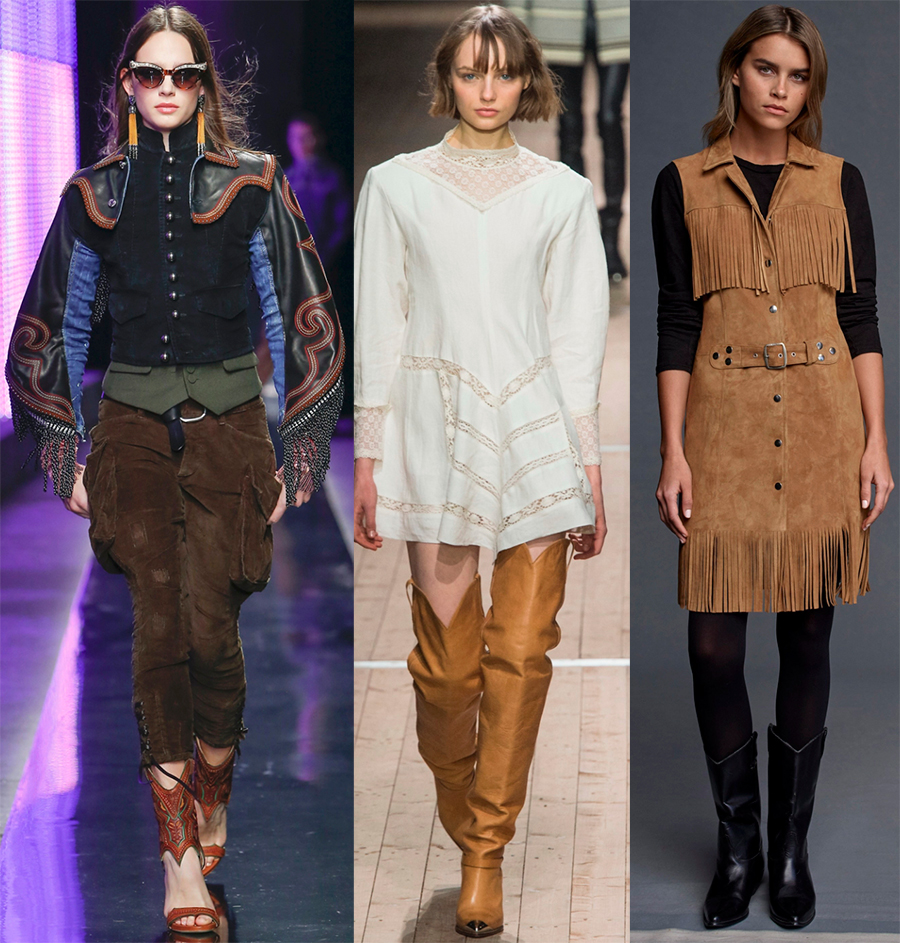 stylehub.techinfus.com déjà raconté, présentait de ravissantes tenues dans l'esprit du Far West, en utilisant des éléments du style cow-boy et du style ethnique des Indiens. Seulement, contrairement aux événements historiques de la mode, les cow-boys et les Indiens ne se battent pas entre eux, mais s'entendent harmonieusement.