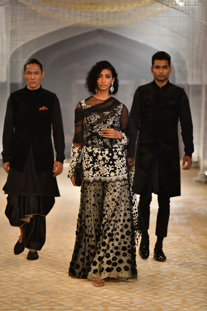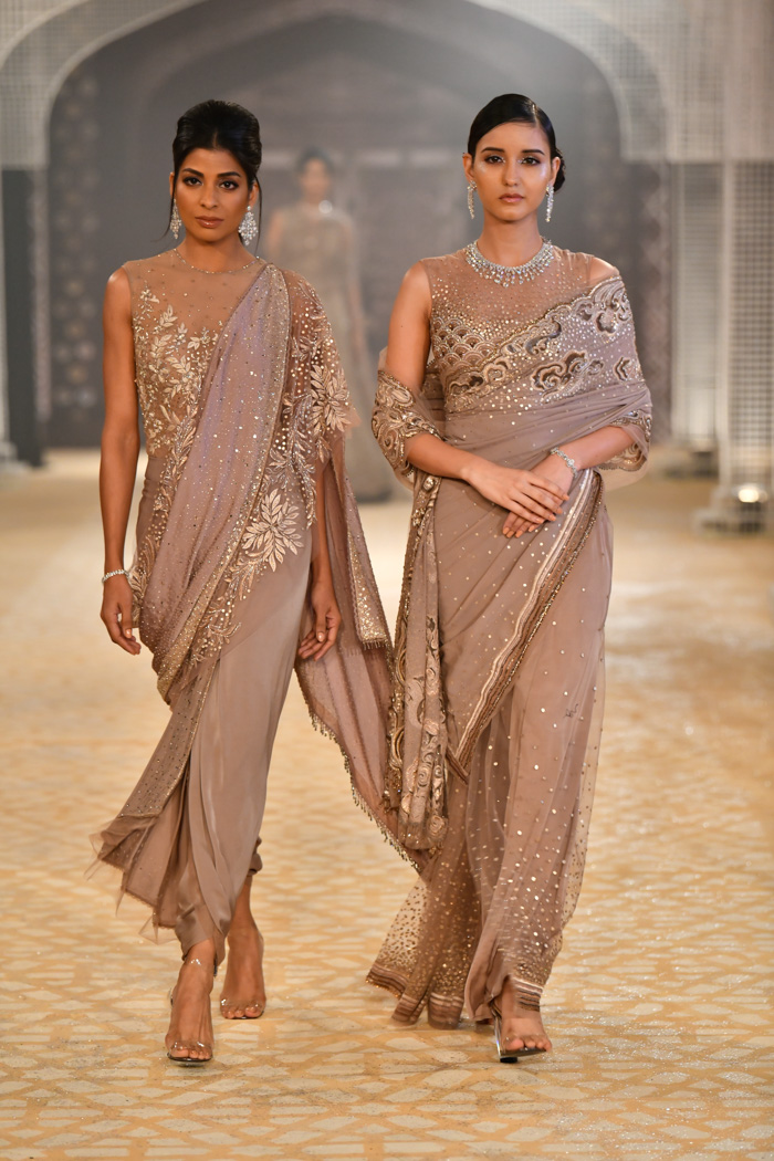 Dans la collection Tarun Tahiliani Haute Couture 2026, vous pouvez voir à la fois des looks féminins et masculins. Par conséquent, à cet égard, il semble plus moderne que les marques de couture de Paris.