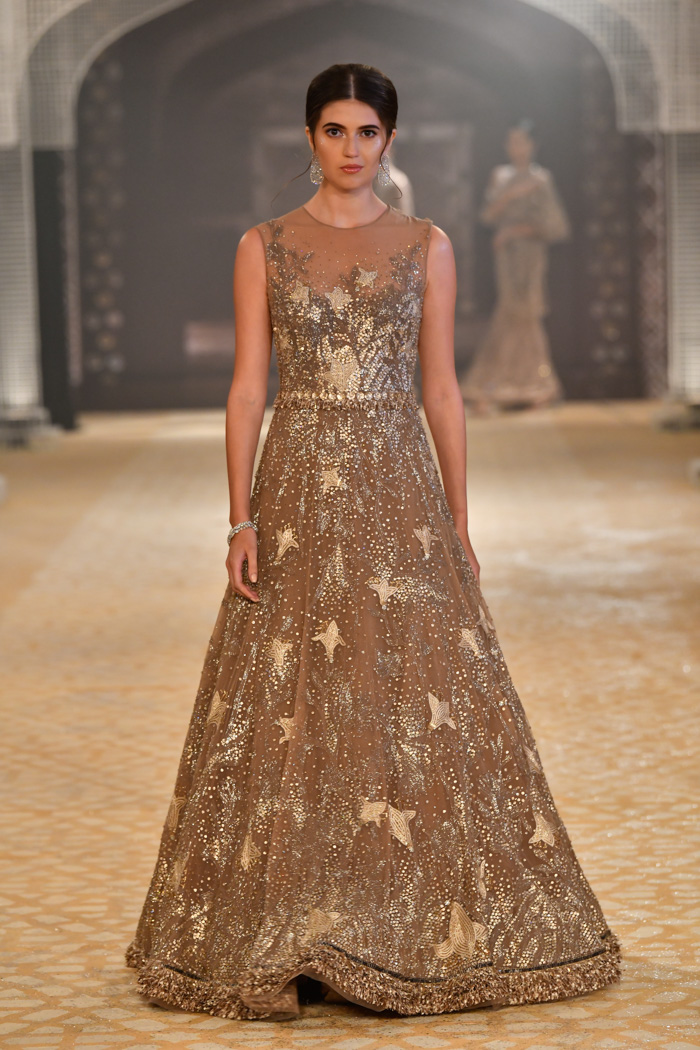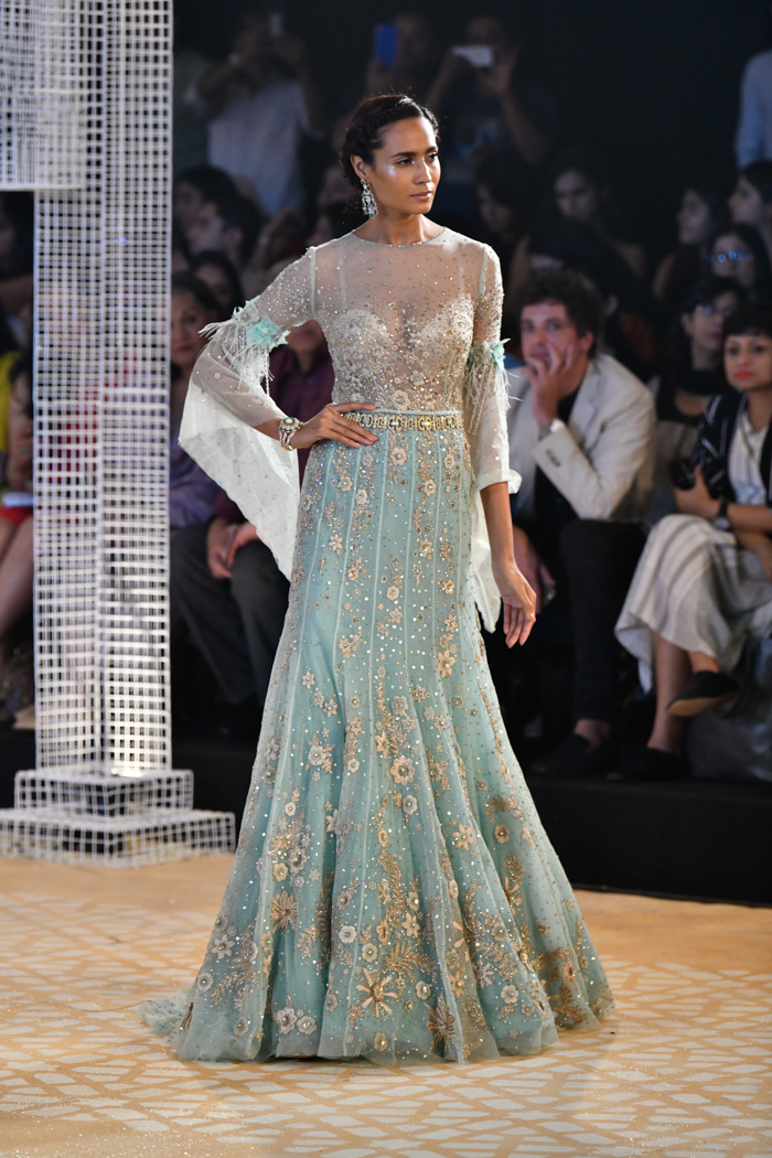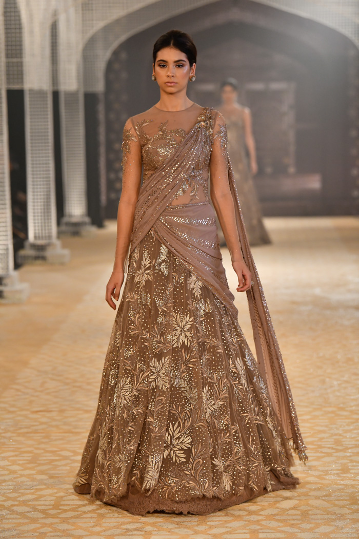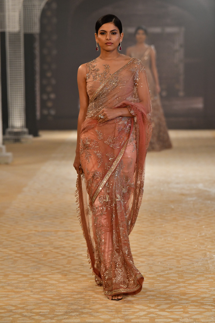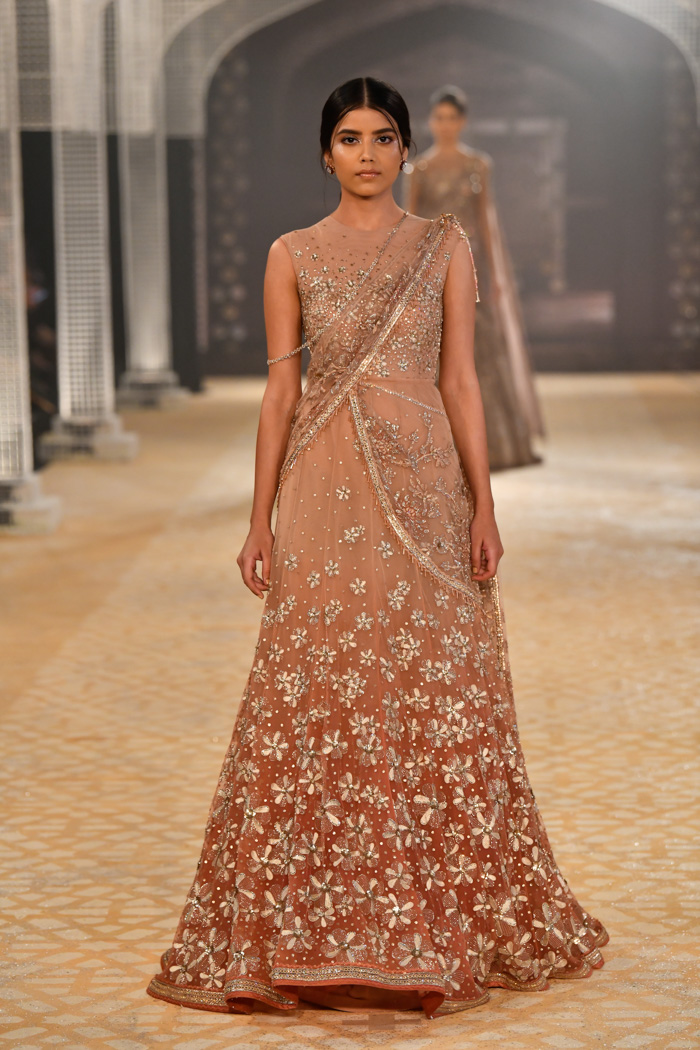 Ainsi, le créateur indien Tarun Tahiliani réalise des collections couture. Dans ses robes, vous pouvez voir des éléments de vêtements traditionnels indiens - des saris, et certains sont entièrement fabriqués dans le style d'un vrai sari. Toutes les robes sont cousues à partir de tissus fins et décorées de cristaux, de broderies, de paillettes et d'autres éléments. Certaines robes sont ornées de perles, de pierres semi-précieuses et même précieuses.