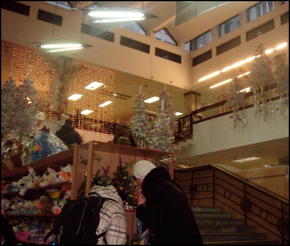 Il s'est avéré qu'il existe un poste de designer à temps plein dans les grands magasins de Minsk, qui s'occupe de la conception des fenêtres et des intérieurs des magasins eux-mêmes. Contactez les concepteurs, par exemple, le même créateurs de modequi participent périodiquement aux défilés de mode de Minsk ne sont pas acceptés, les magasins se débrouillent seuls. Et, malheureusement, cette année, il s'est avéré peu brillant - arbres de Noël, guirlandes, flocons de neige et bonhommes de neige. Il n'y a pas tellement de vitrines solides, décorées dans le même style, originales.