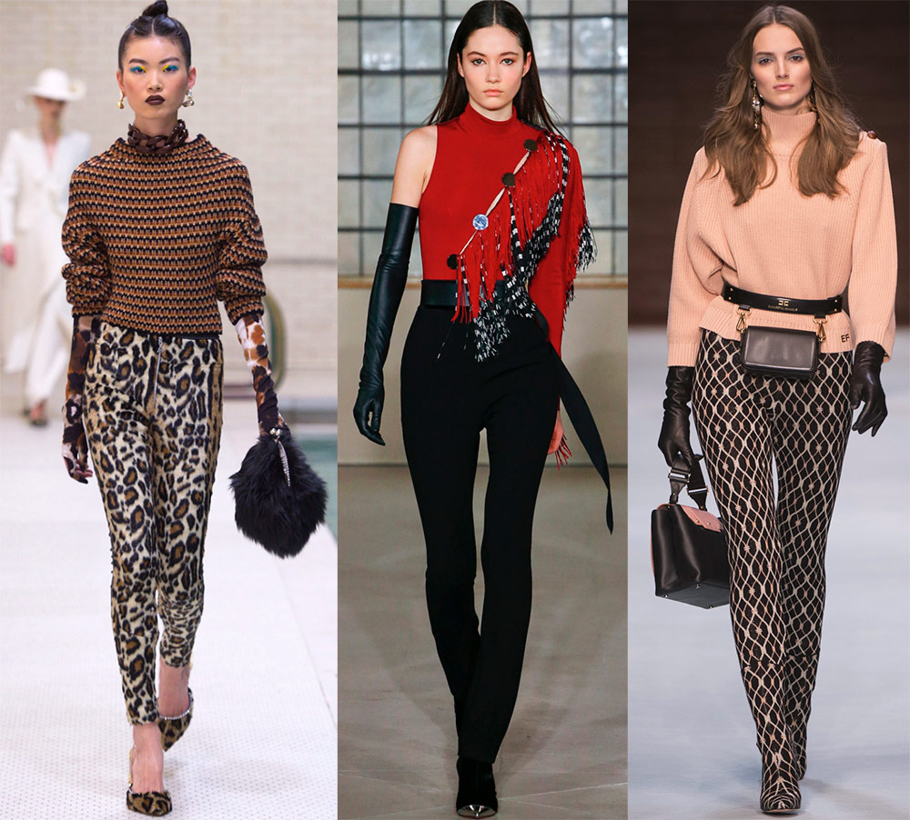 Parmi ces modèles, des pantalons palazzo, des pantalons qui ont une extension au niveau des hanches, des pantalons larges et évasés sont souvent apparus sur les podiums.