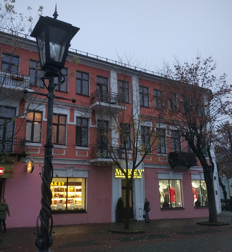 Et c'est juste une idée incroyable - rassembler des magasins avec des vêtements de marques biélorusses dans la même rue. Ici, vous pouvez tout trouver - des sous-vêtements, par exemple, de Milavitsa ou Mark Formelle, et des tricots biélorusses, par exemple, de Pinsk, et des vêtements pour toute la famille de la marque Kalinka, et des costumes et des robes plus chers et élégants de Lakbi.