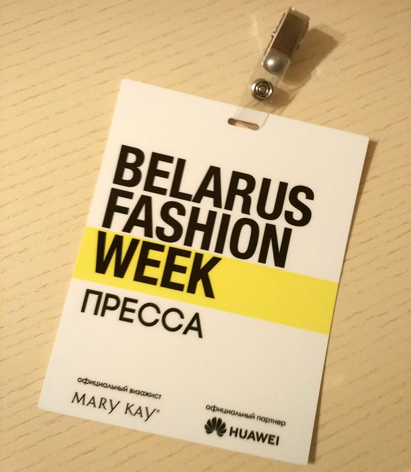 De plus, le thème du carré a été tracé dans la conception même de la Semaine de la mode biélorusse - jusqu'aux badges pour les bénévoles et la presse.