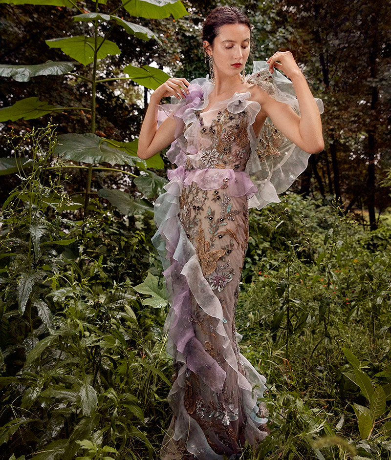Marchesa est célèbre pour ses robes de soirée luxueuses pour les fêtes et les occasions spéciales. De nombreuses célébrités choisissent les robes de la marque pour le tapis rouge.