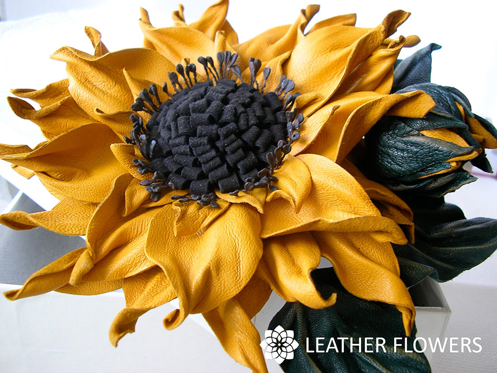 Notre direction est la création de bijoux en cuir, par exemple, des broches fleuries et la production de fleurs d'intérieur. Nous nous inspirons souvent pour créer des fleurs dans la nature elle-même : un iris exquis et noble, un bouquet délicat de trèfles, un tournesol ensoleillé lumineux, un lys blanc délicat, une rose luxueuse, un magnifique coquelicot. Toutes ces belles fleurs ont résonné avec notre créativité.
