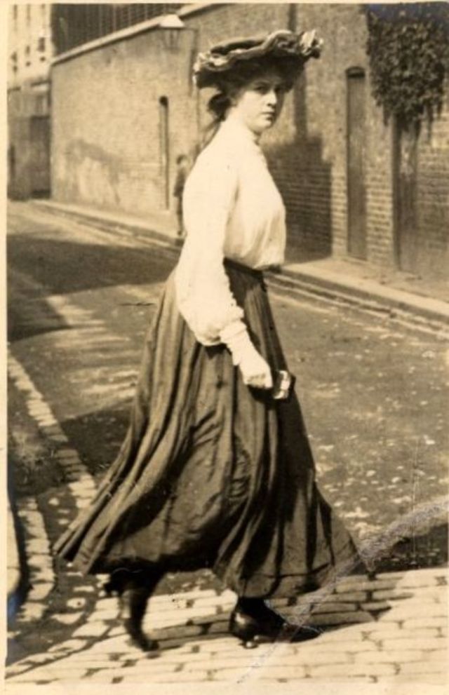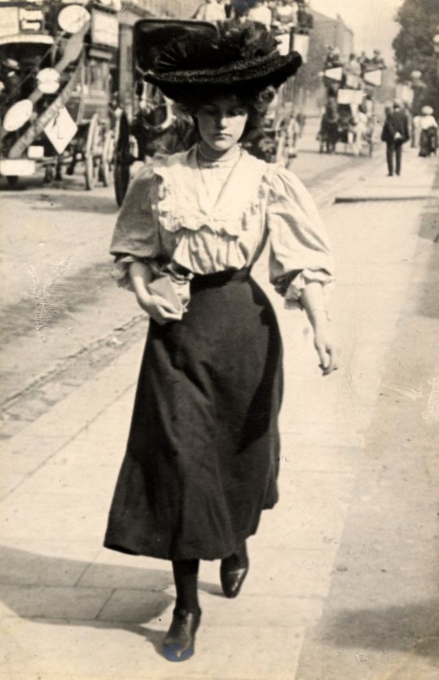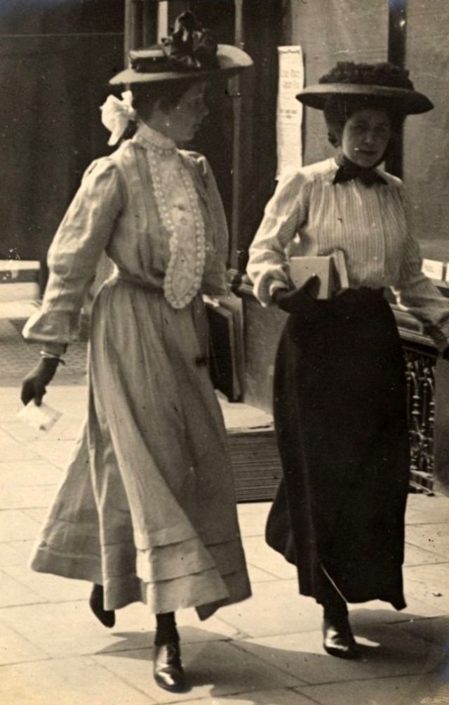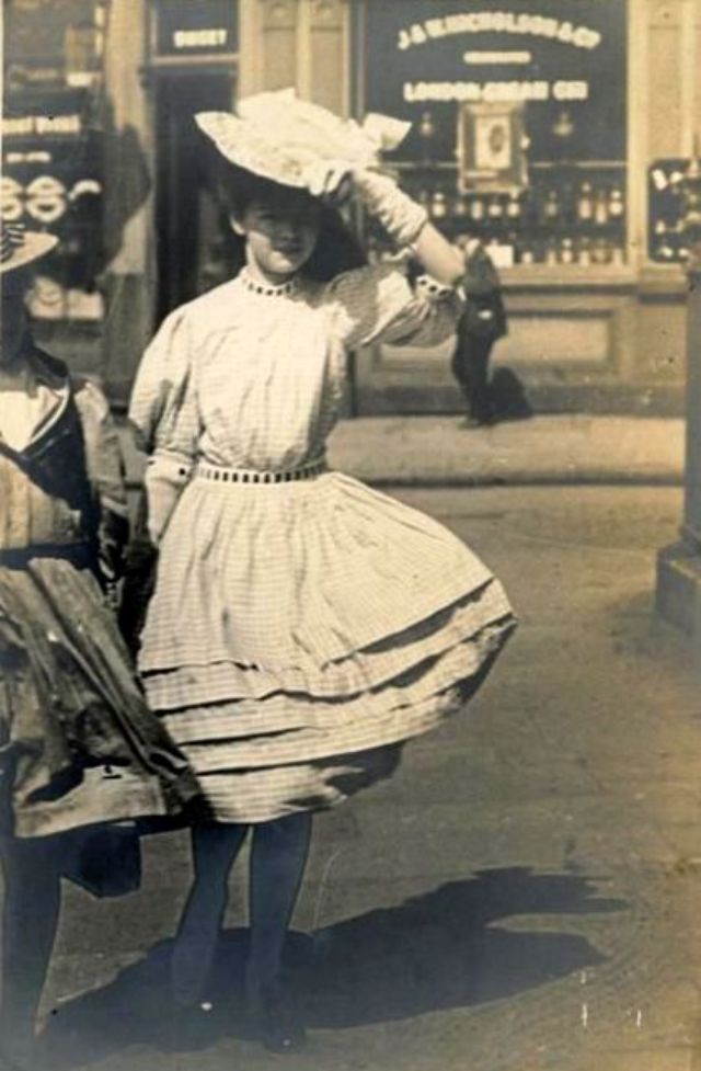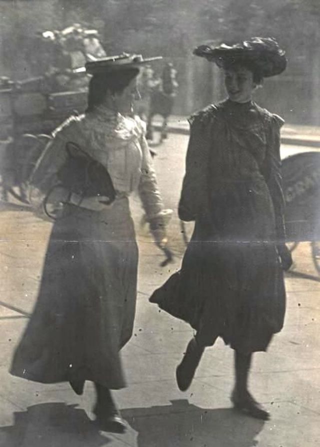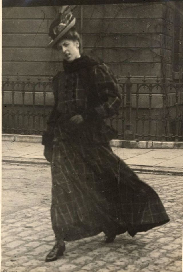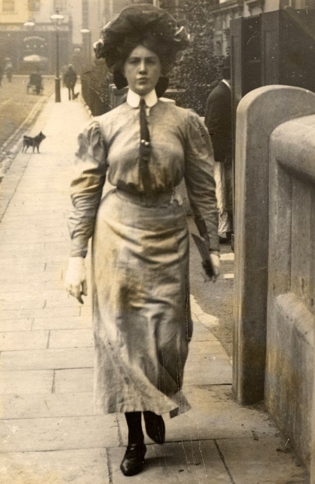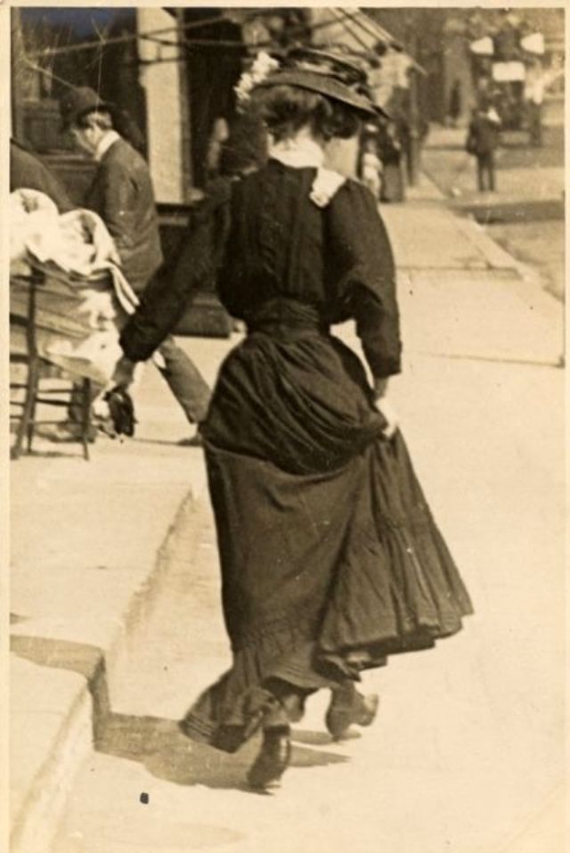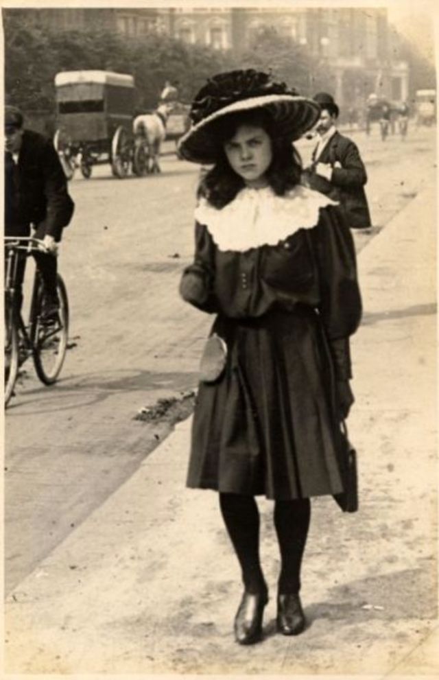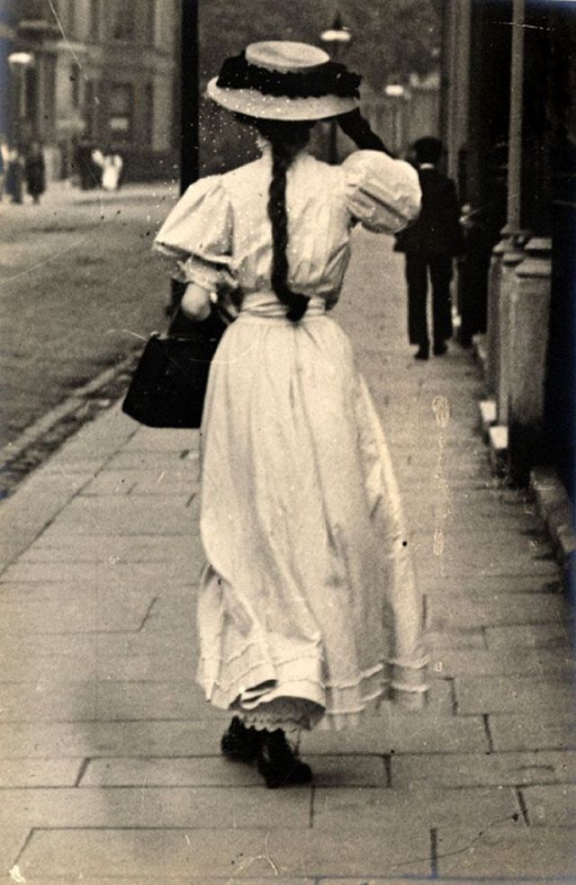 De telles photographies sont très rares. En 1900-1910, la photographie était assez chère, et les gens ne prenaient pas des dizaines de clichés par jour pour le plaisir, comme nous prenons des photos à la première occasion aujourd'hui. Ensuite, les gens se sont préparés pour la prise de vue, ont mis les meilleures robes et ont fait de leur mieux pour créer l'image la plus exquise. Par conséquent, les photos de style de rue de l'ère édouardienne sont particulièrement précieuses, car elles offrent l'occasion de voir les fashionistas de ces années dans un cadre réel.