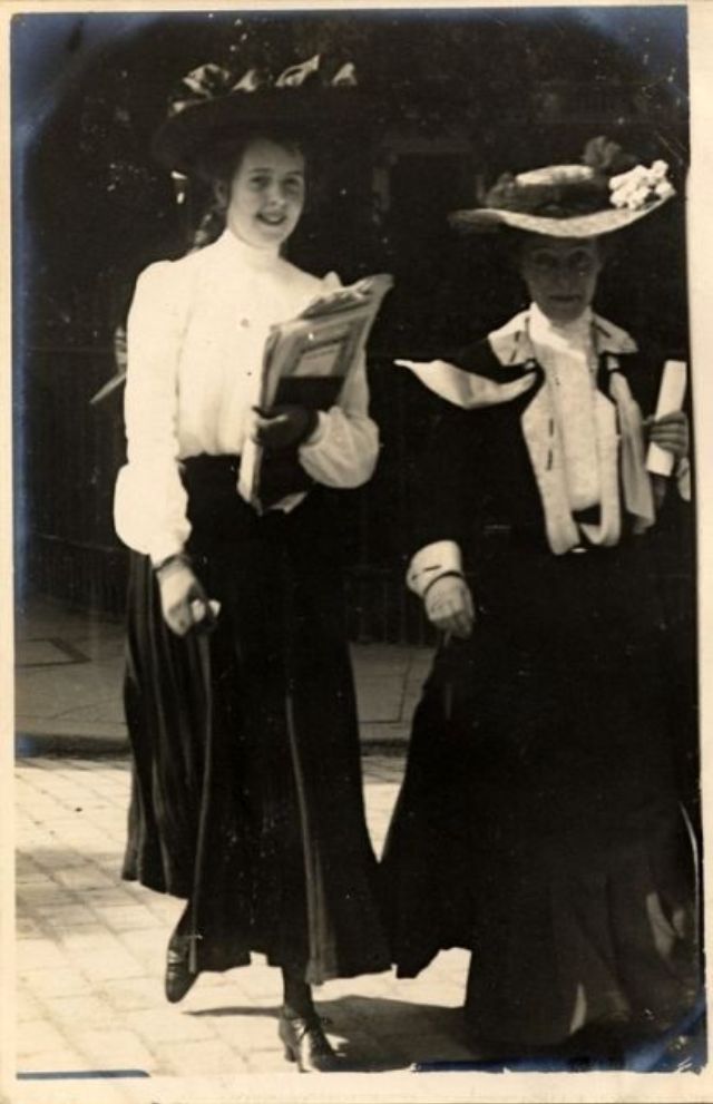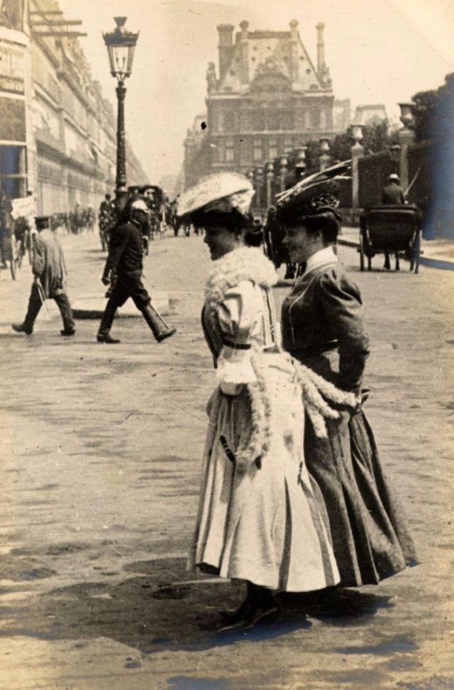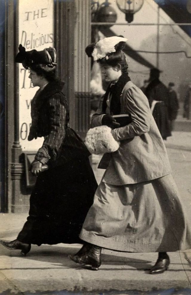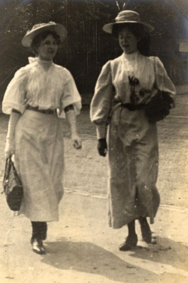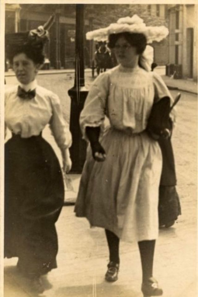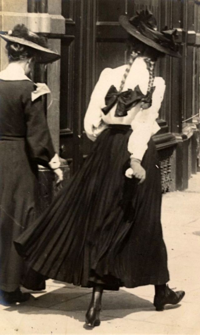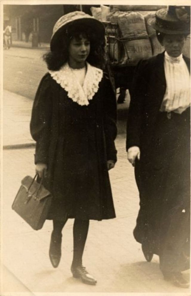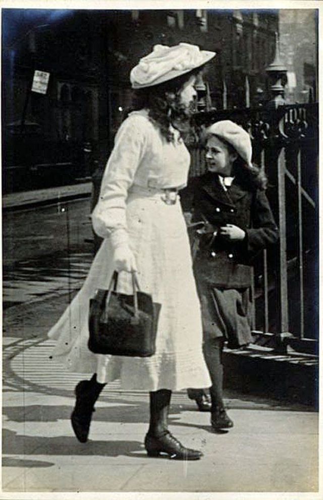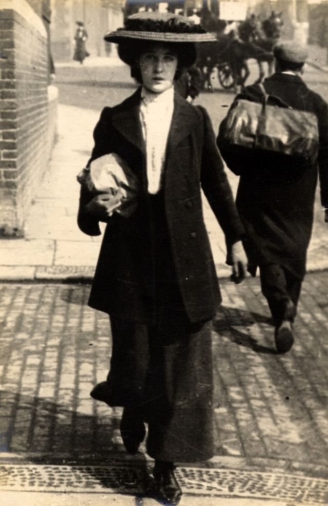 De telles photographies sont très rares. En 1900-1910, la photographie était assez chère, et les gens ne prenaient pas des dizaines de clichés par jour pour le plaisir, comme nous prenons des photos à la première occasion aujourd'hui. Ensuite, les gens se sont préparés pour la prise de vue, ont mis les meilleures robes et ont fait de leur mieux pour créer l'image la plus exquise. Par conséquent, les photos de style de rue de l'ère édouardienne sont particulièrement précieuses, car elles offrent l'occasion de voir les fashionistas de ces années dans un cadre réel.