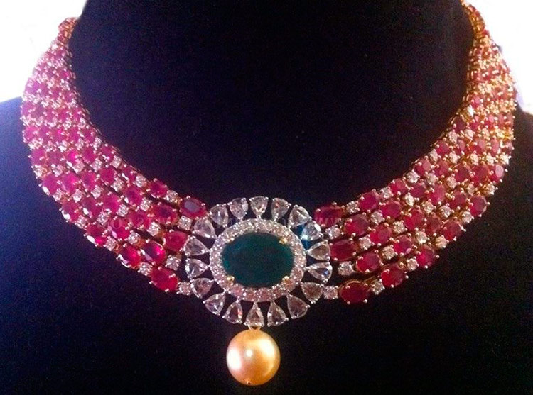 la décoration ressemble à une rivièrecoulant juste en dessous de la base du cou de la belle. Traduit du français, le mot riviere signifie rivière. Ainsi, le nom de ce collier exprime avec précision son essence.
