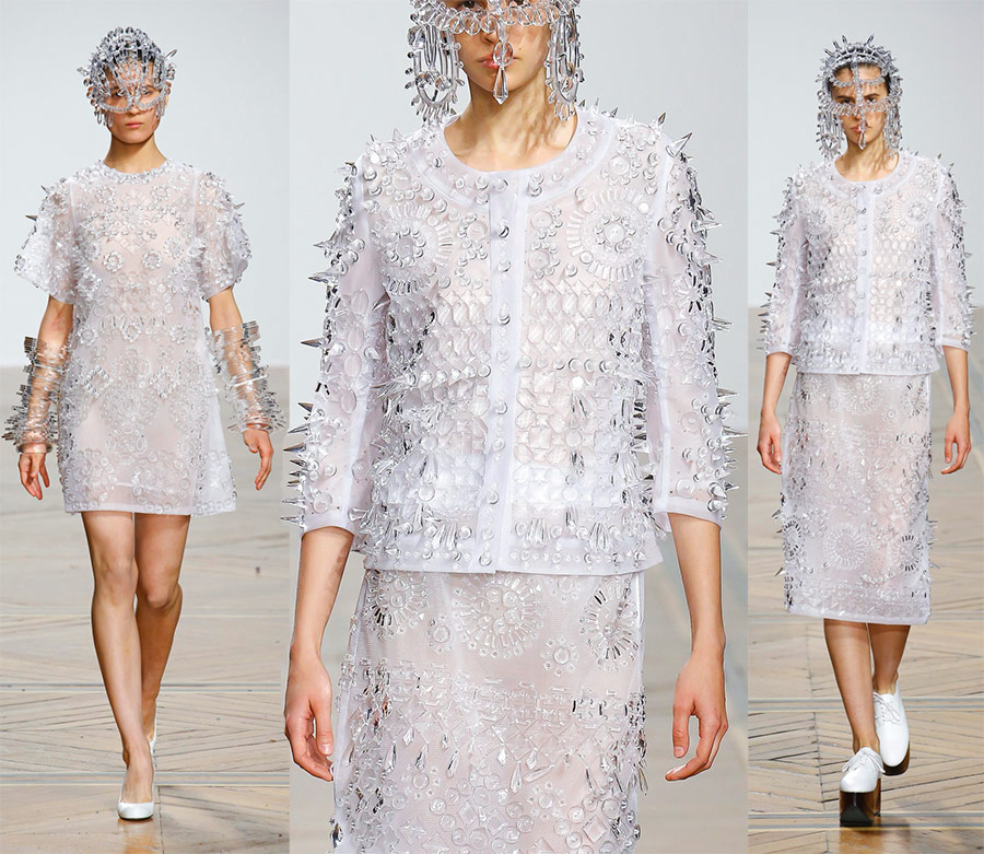 Dans la nouvelle saison printemps-été 2026, le créateur propose à nouveau son fantasmes sur le réel et l'irréel... Les nouveaux modèles combinent un flair futuriste avec un fort accent sur le décor. Les robes féminines en tissu transparent étaient ornées de centaines de boutons, de boules et de rivets, qui changeaient de couleur au fur et à mesure que les filles bougeaient, et les vestes passaient progressivement du denim ou de la gabardine aux formes trapézoïdales en polyester transparent.