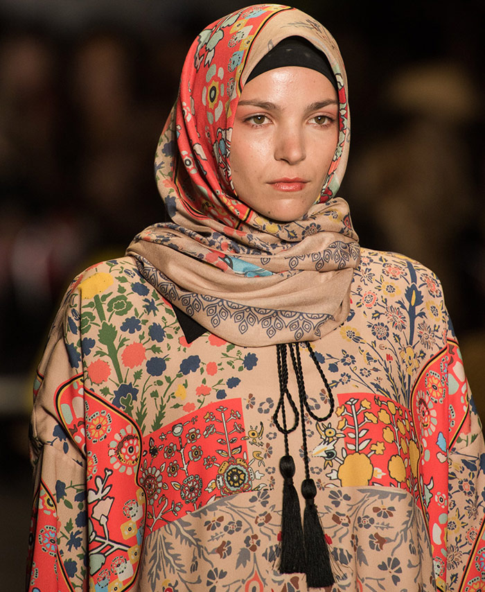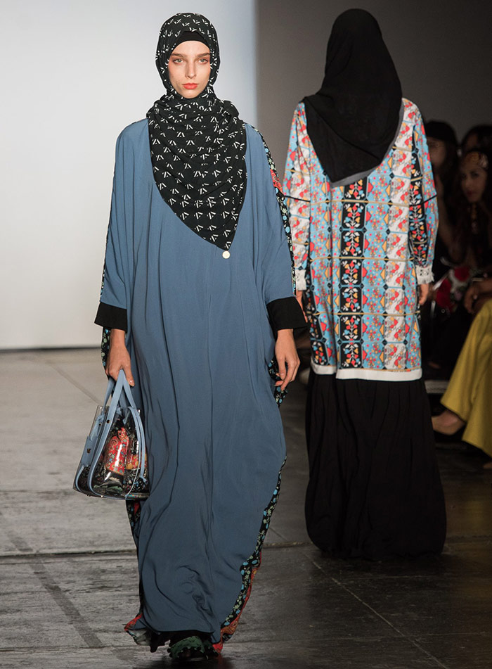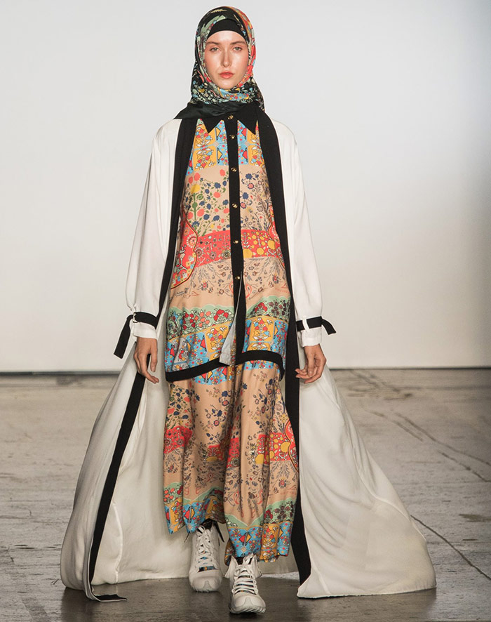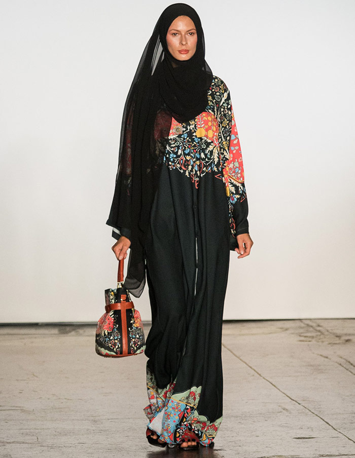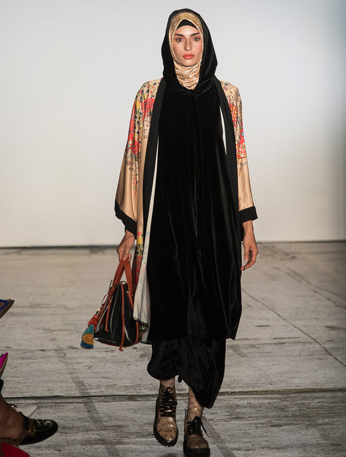 à New York... La créatrice privilégie les robes de type abaya. Les looks de Vivi Zubedi sont toujours intelligents et riches. Certaines robes et foulards de la marque sont ornés d'un monogramme qui ressemble beaucoup au monogramme d'une marque célèbre.