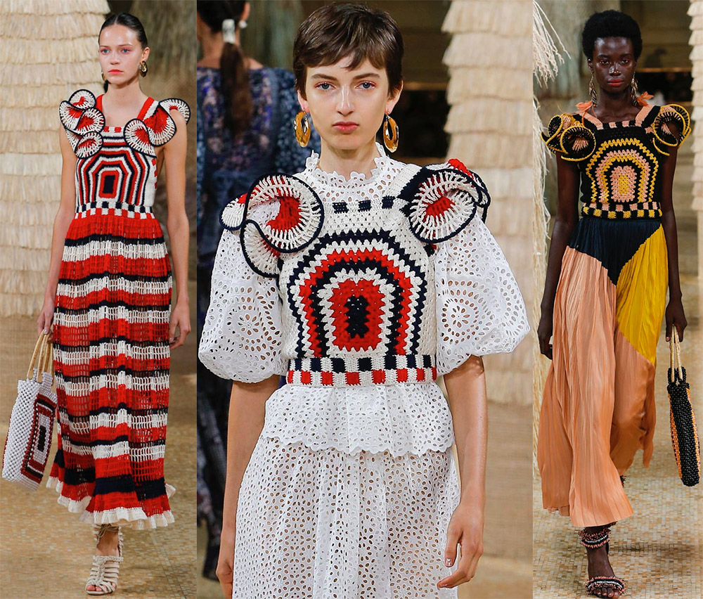 Les produits peuvent être faits de fils colorés, décorés de franges, de glands. Vous pouvez aborder cette tendance plus facilement - pour faire la garniture en tricot ajouré. Vous pouvez voir de nombreux ensembles intéressants dans les collections de Chloé, Ulla Johnson, Oscar de la Renta.